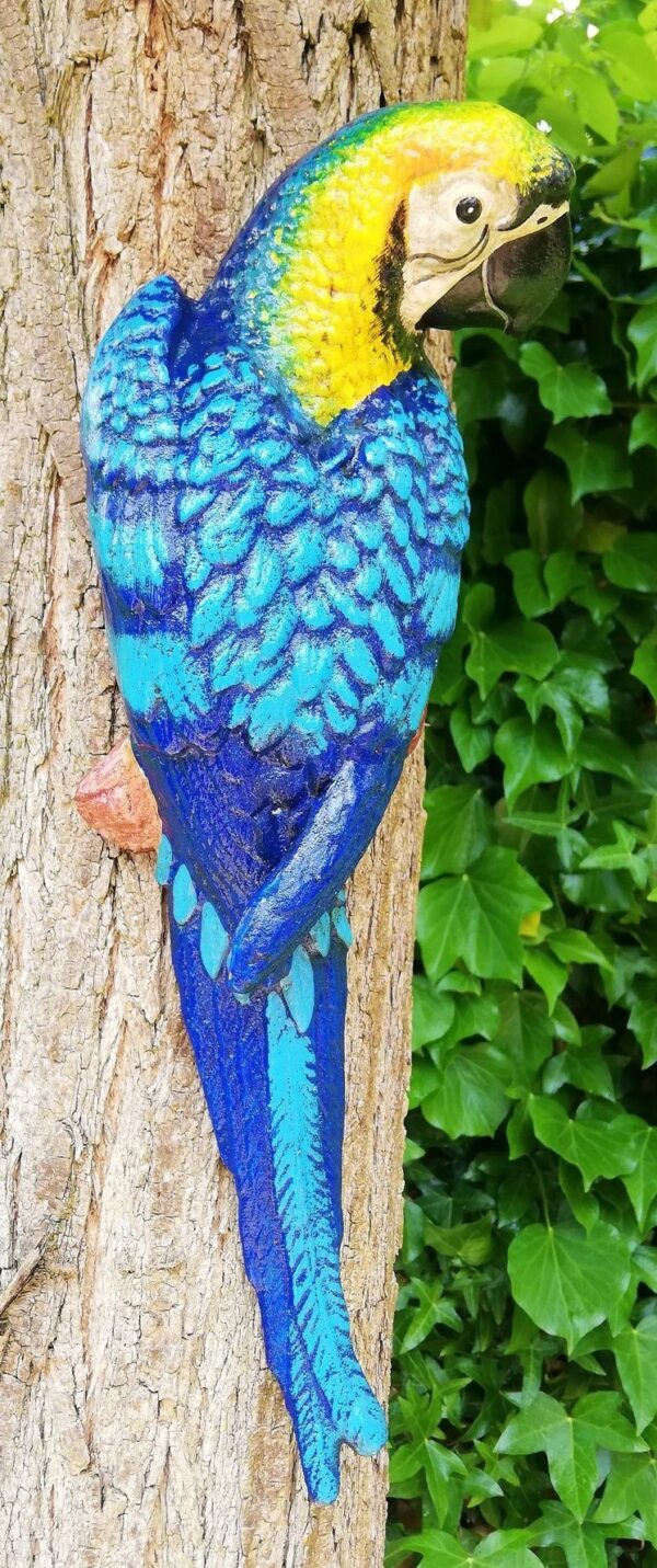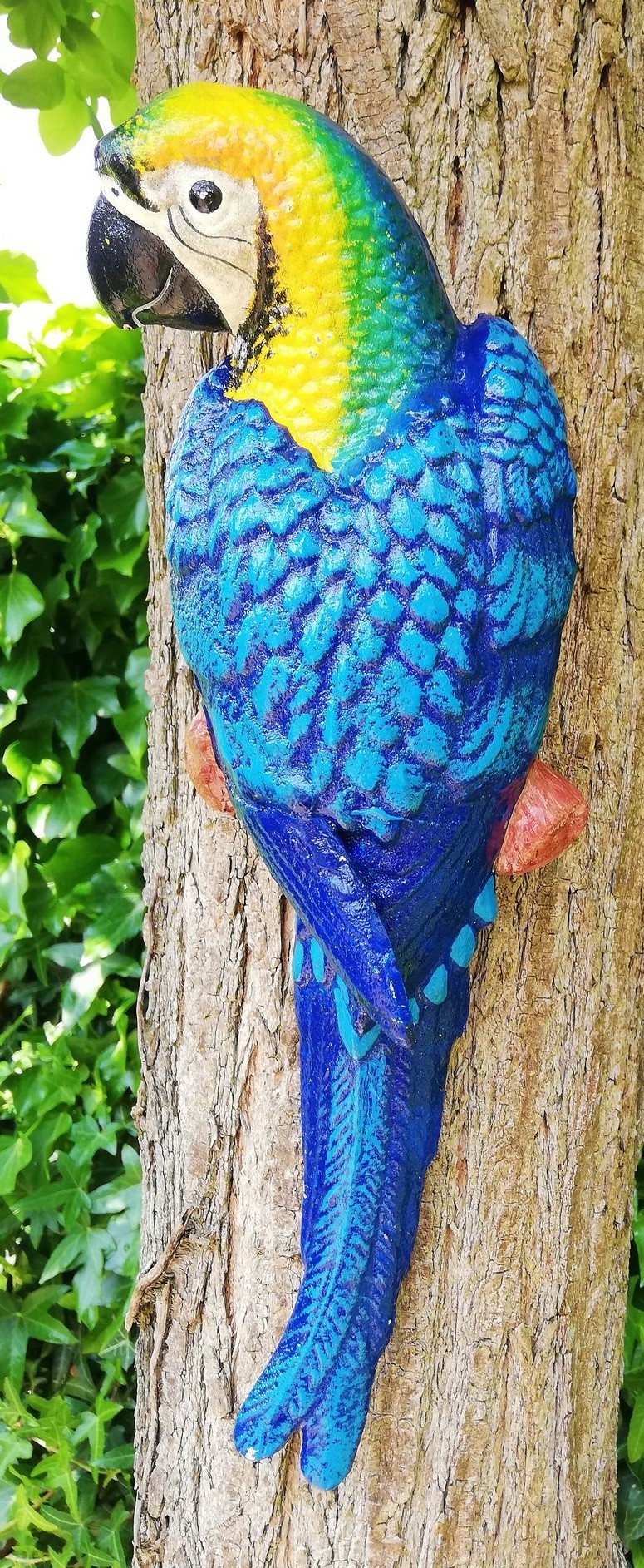 Guacamayo. Escultura en hierro fundido. 36 cm altura. Policromado.