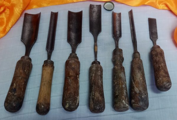 Gubias. Antiguas herramientas de maestro tallista. 7 gubias.