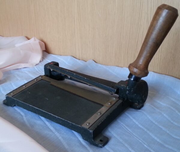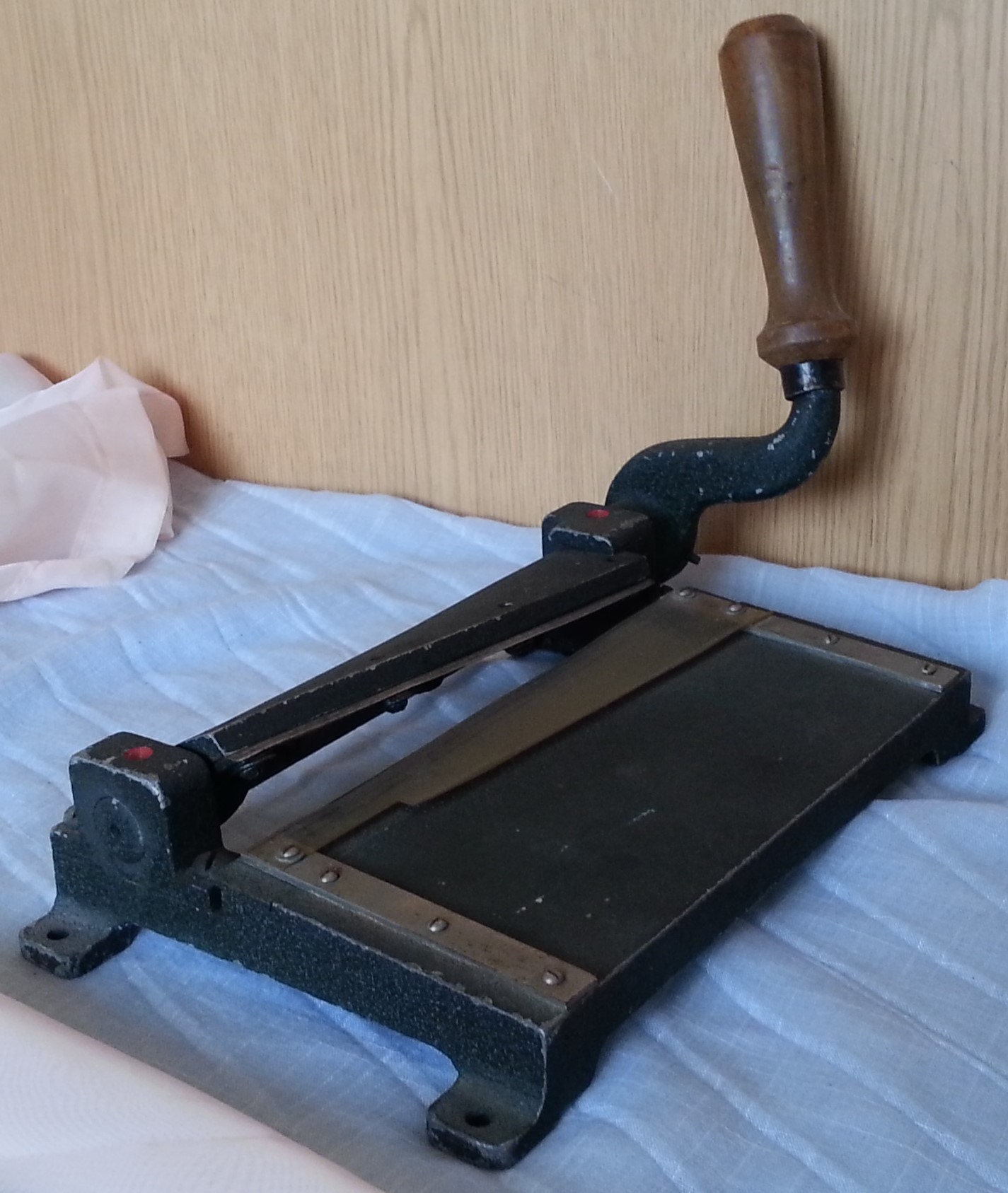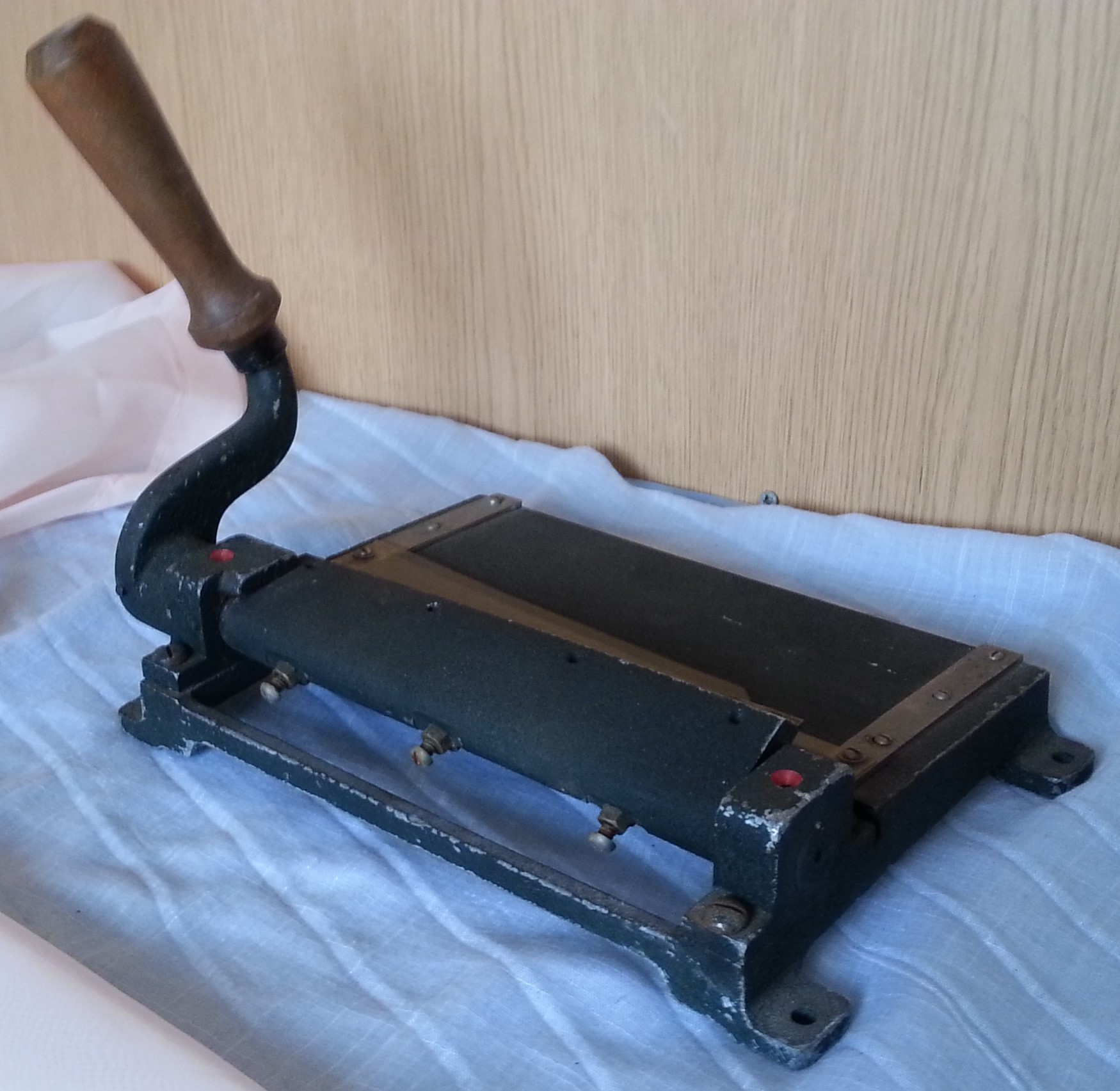 Magnífica cortadora de los años 60 en muy buen estado general. Utilizada para cortar papel y fotocopias.