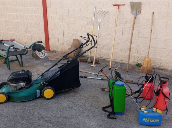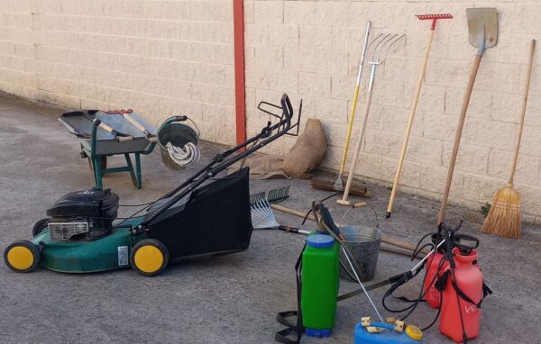 Herramientas de jardinería. Actuales. Conjunto completo para alquiler en publi y cine.