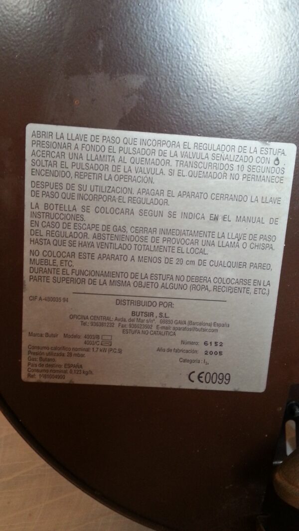 Hornillo de butano. Utilizable en cocina o para camping, excursiones, etc . . .