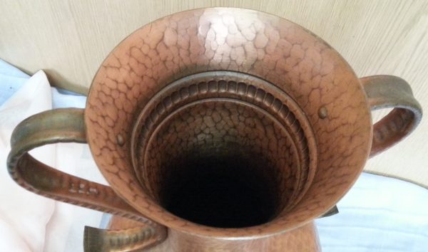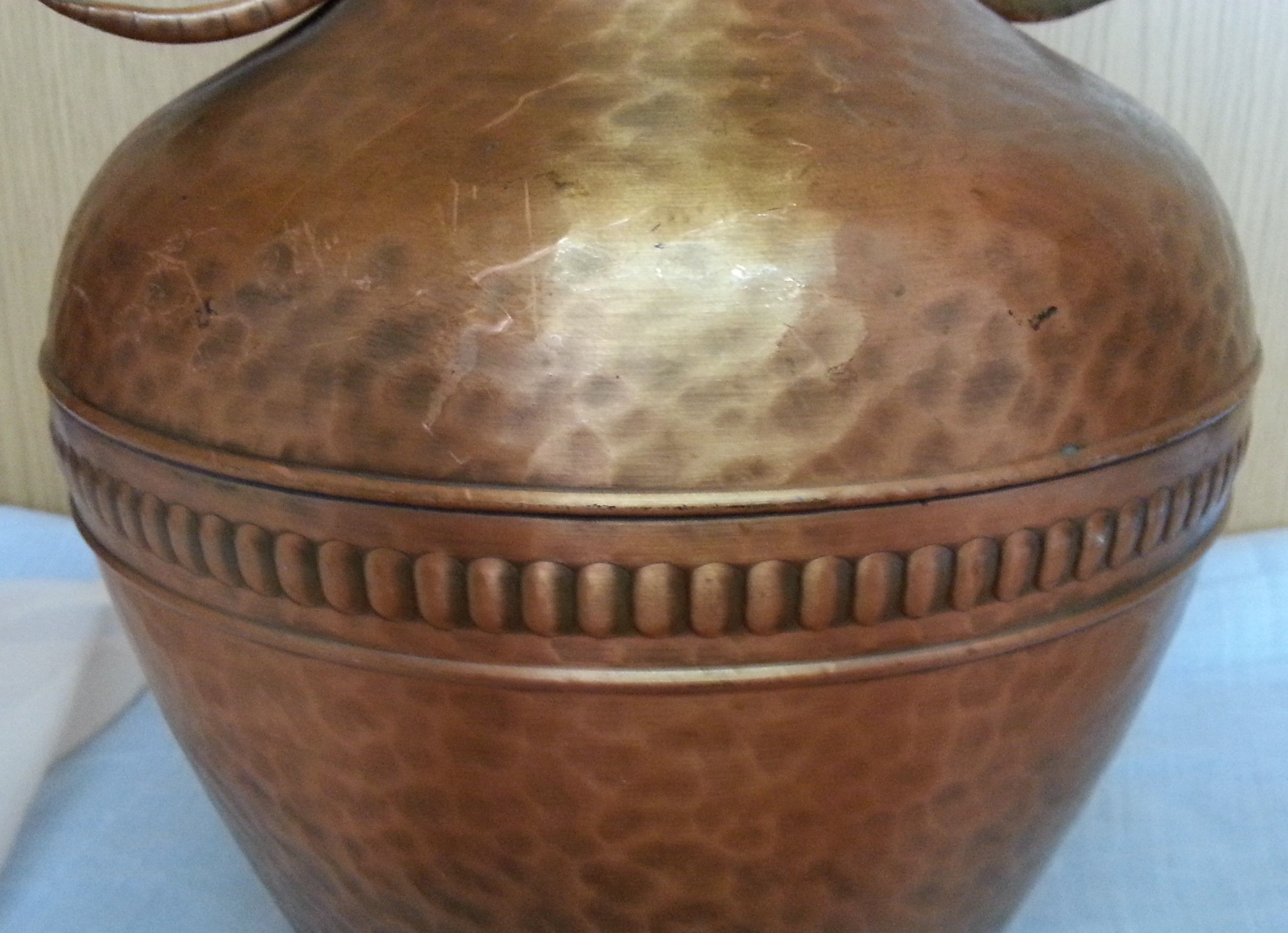Jarra de agua en cobre repujado. Años 70. Maravillosa pieza.