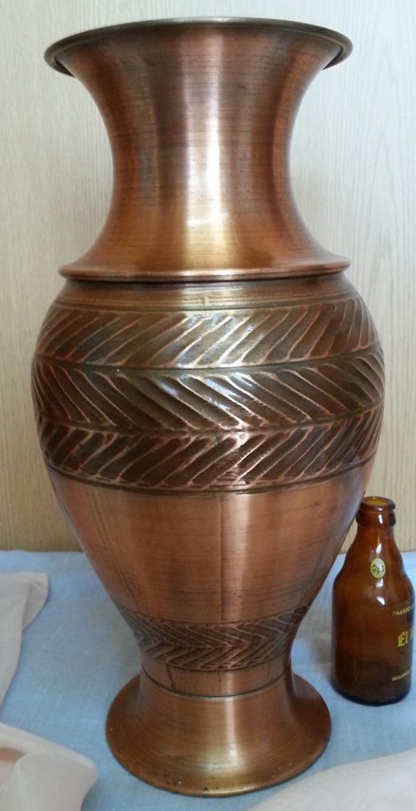 Jarrón en cobre repujado. Años 70. Magnífica pieza.