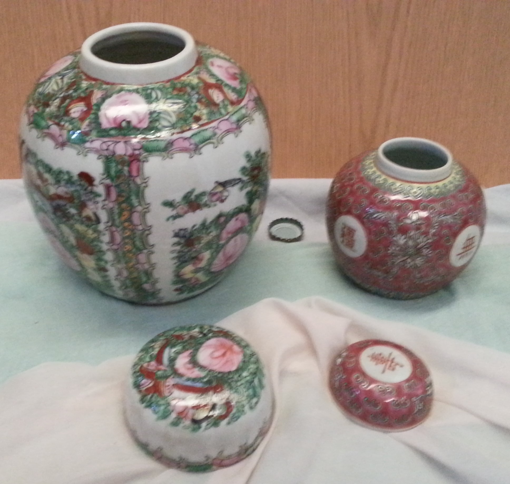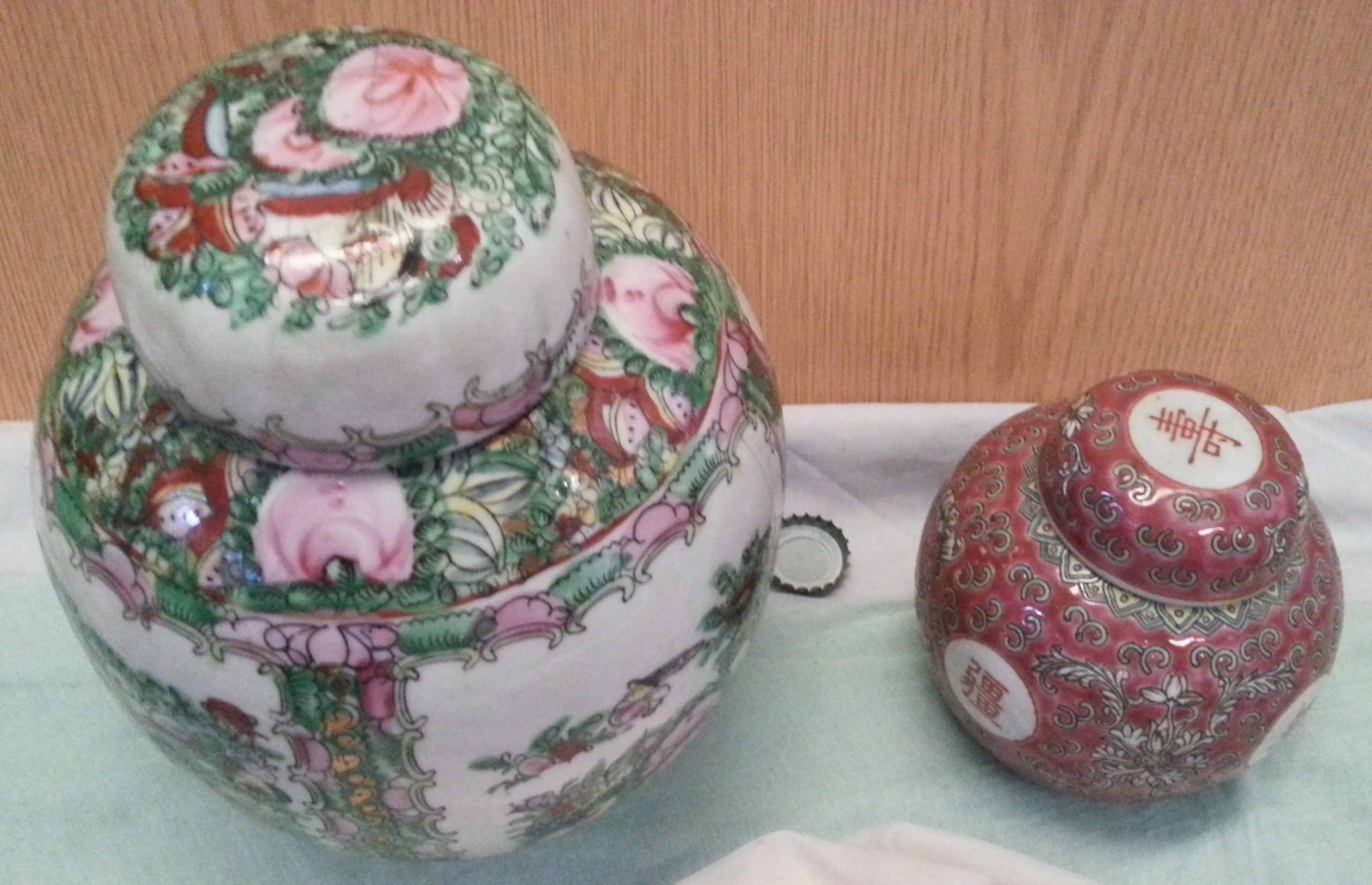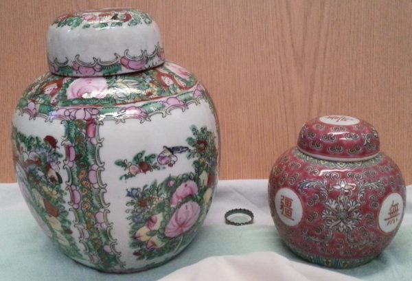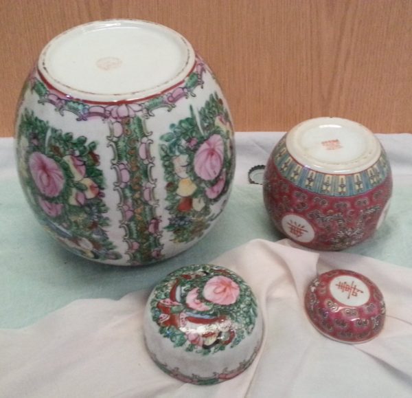 Jarrones chinos de tocador. Pareja. Preciosos motivos en todo su contorno. Calidad.