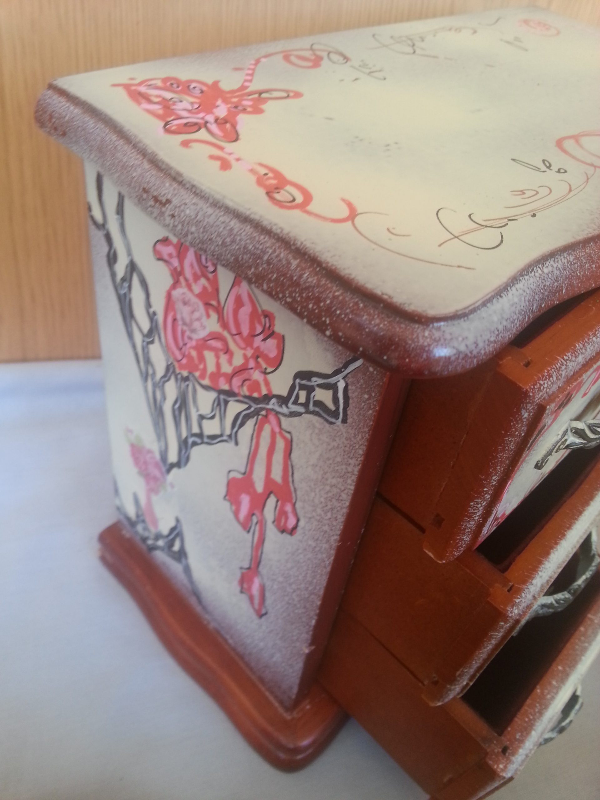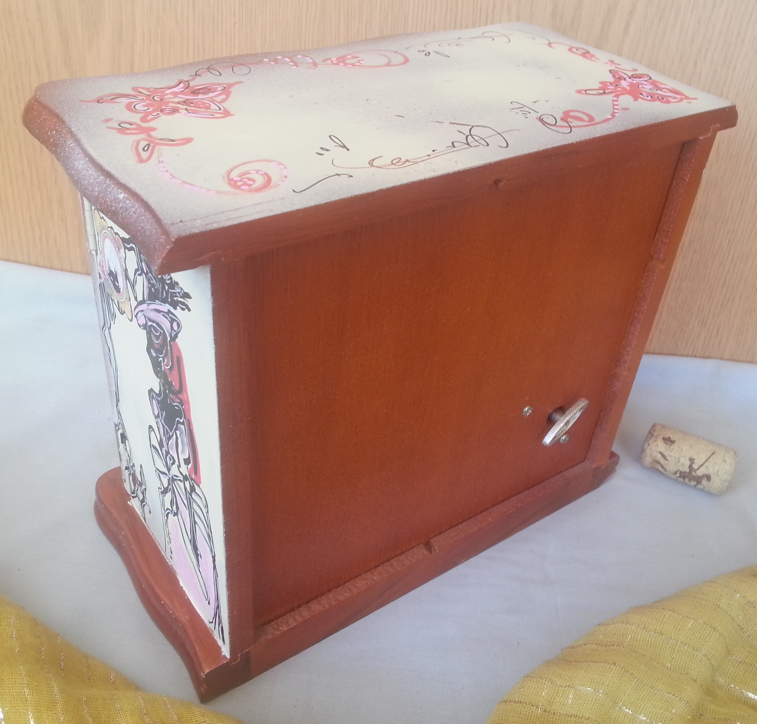 Joyero vintage en madera decorado a mano. Con música.