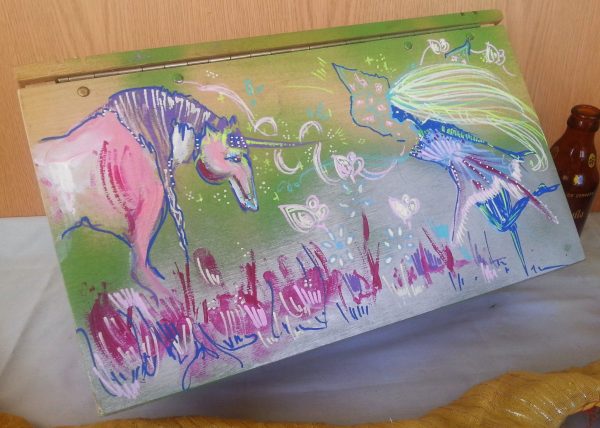 Joyero vintage en madera. Pintado a mano por las dos caras.