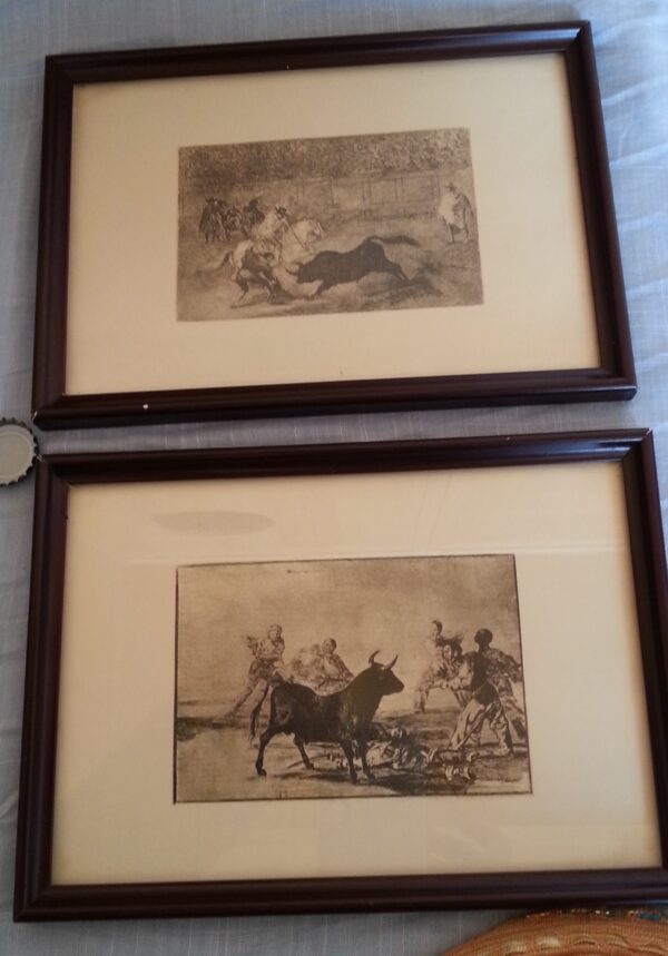 Láminas taurinas. Pareja. Enmarcadas y acristaladas.