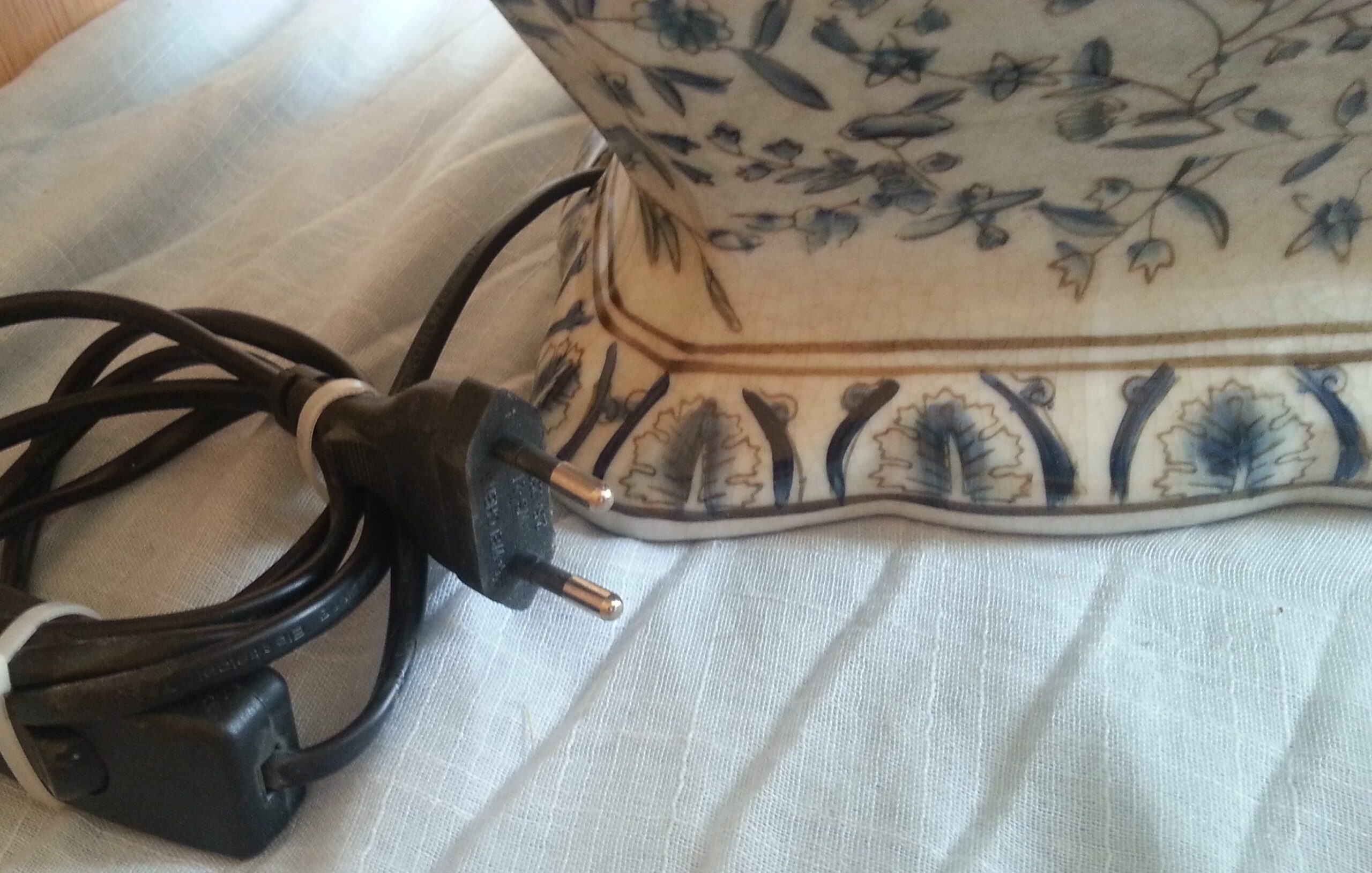 Preciosa lámpara de mesa de los años 70 en porcelana decorada. Funciona perfectamente.