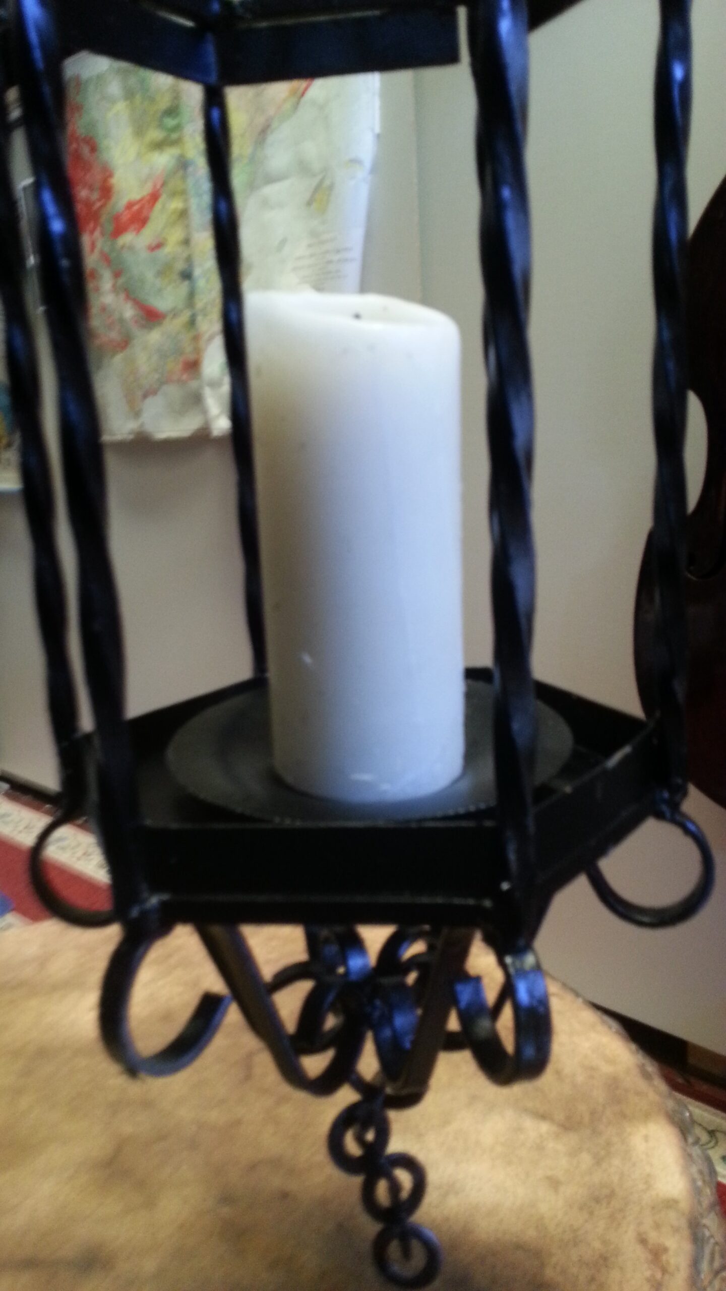 Lámpara de techo en hierro. Estilo medieval. Velón grande incluido.
