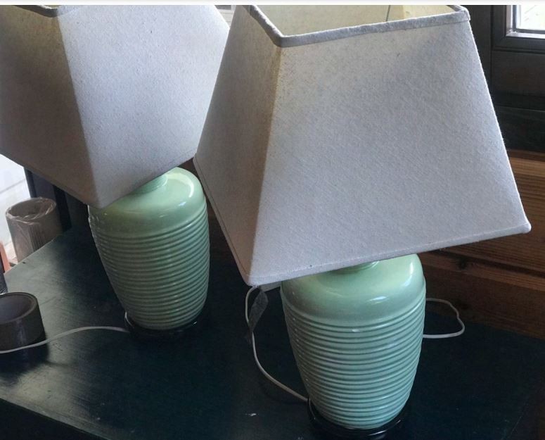 Lámparas de mesa con mástil cerámico. Muy buen estado. Funcionando.