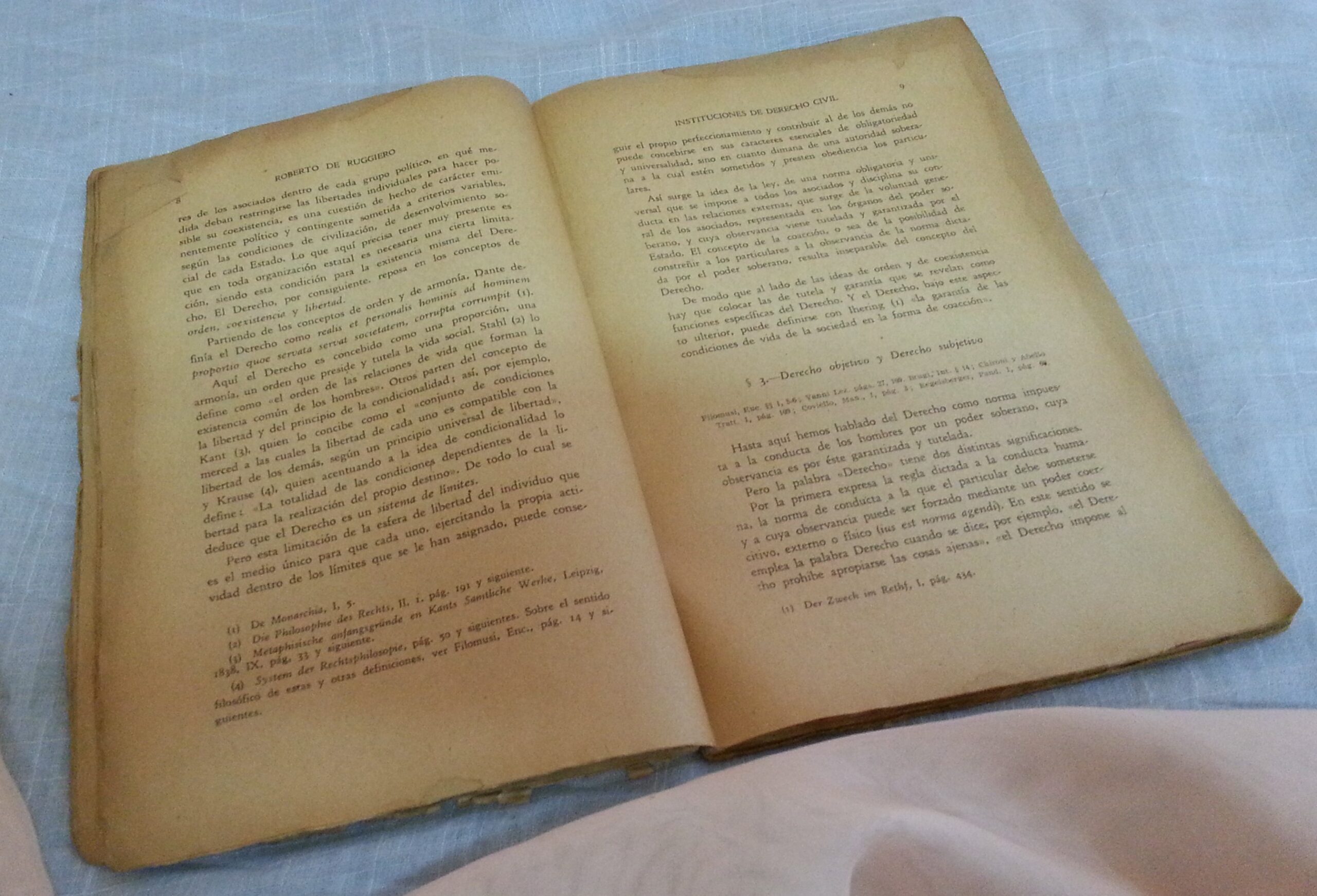 Instituciones de derecho Civil, Volumen primero, por Roberto de Ruggiero. Editado por Editorial Reus en Madrid en el año 1920. 90 pag.