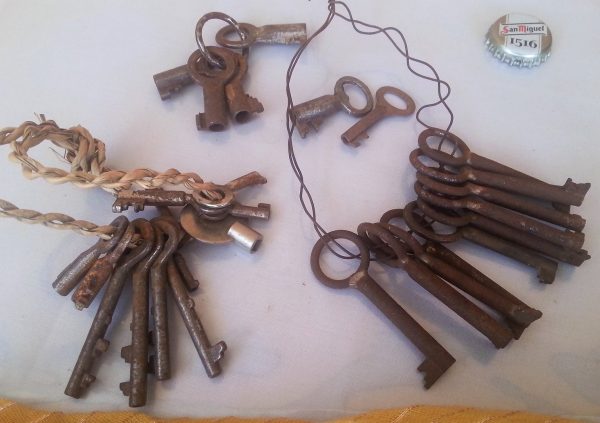 LLAVES EN MANOJOS. VIEJAS. 2 MANOJOS MUY COMPLETOS. BUMPER KEYS. OLD: Tal cual se pueden ver en las fotos. Los tamaños oscilan entre los 2 y 6 cm de largo. Ref. nº 3116-Z