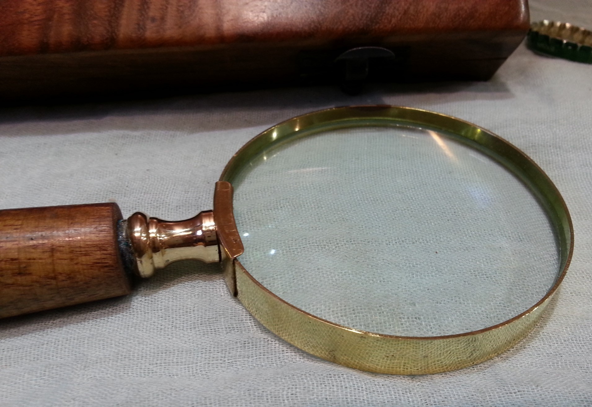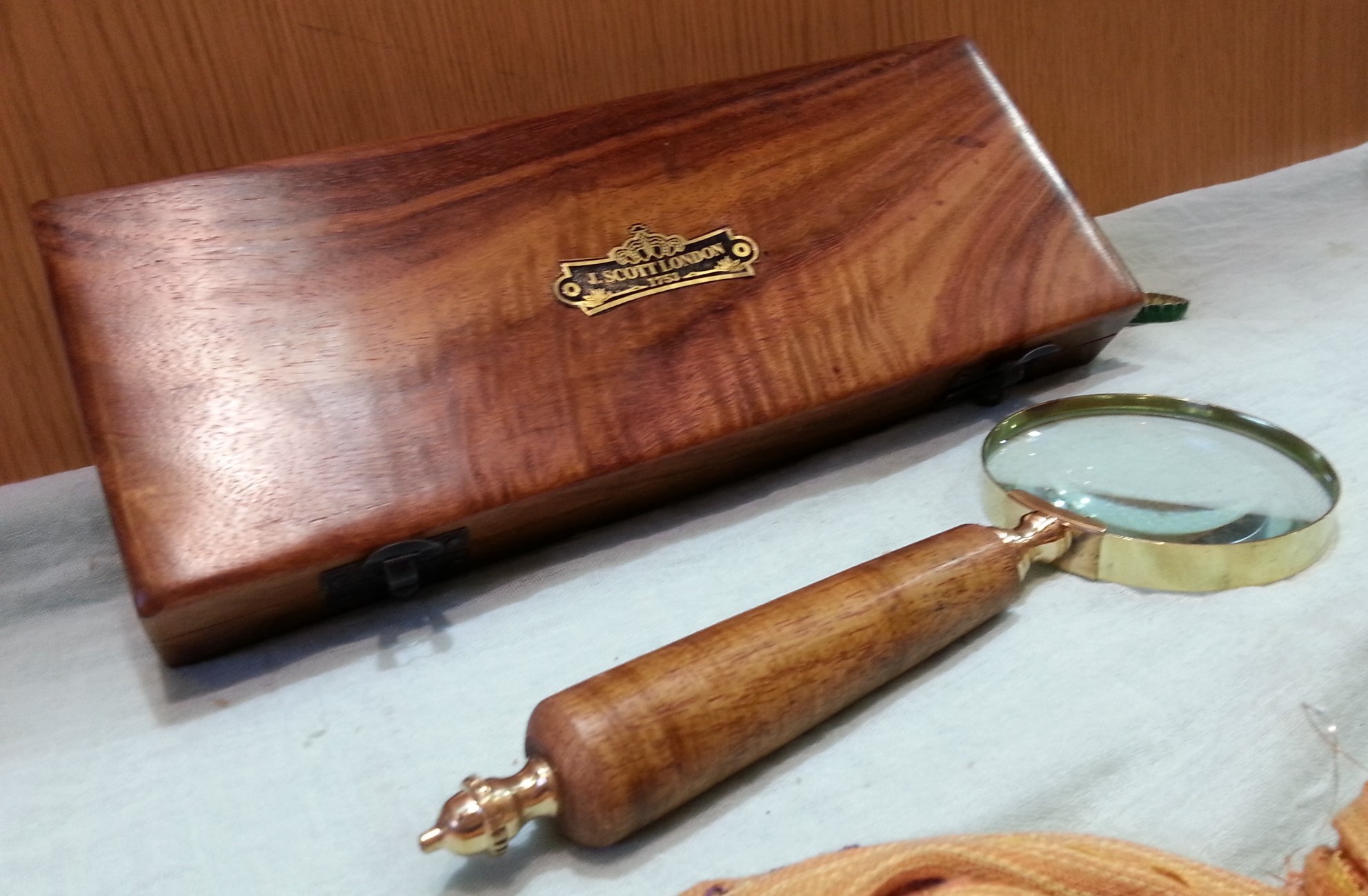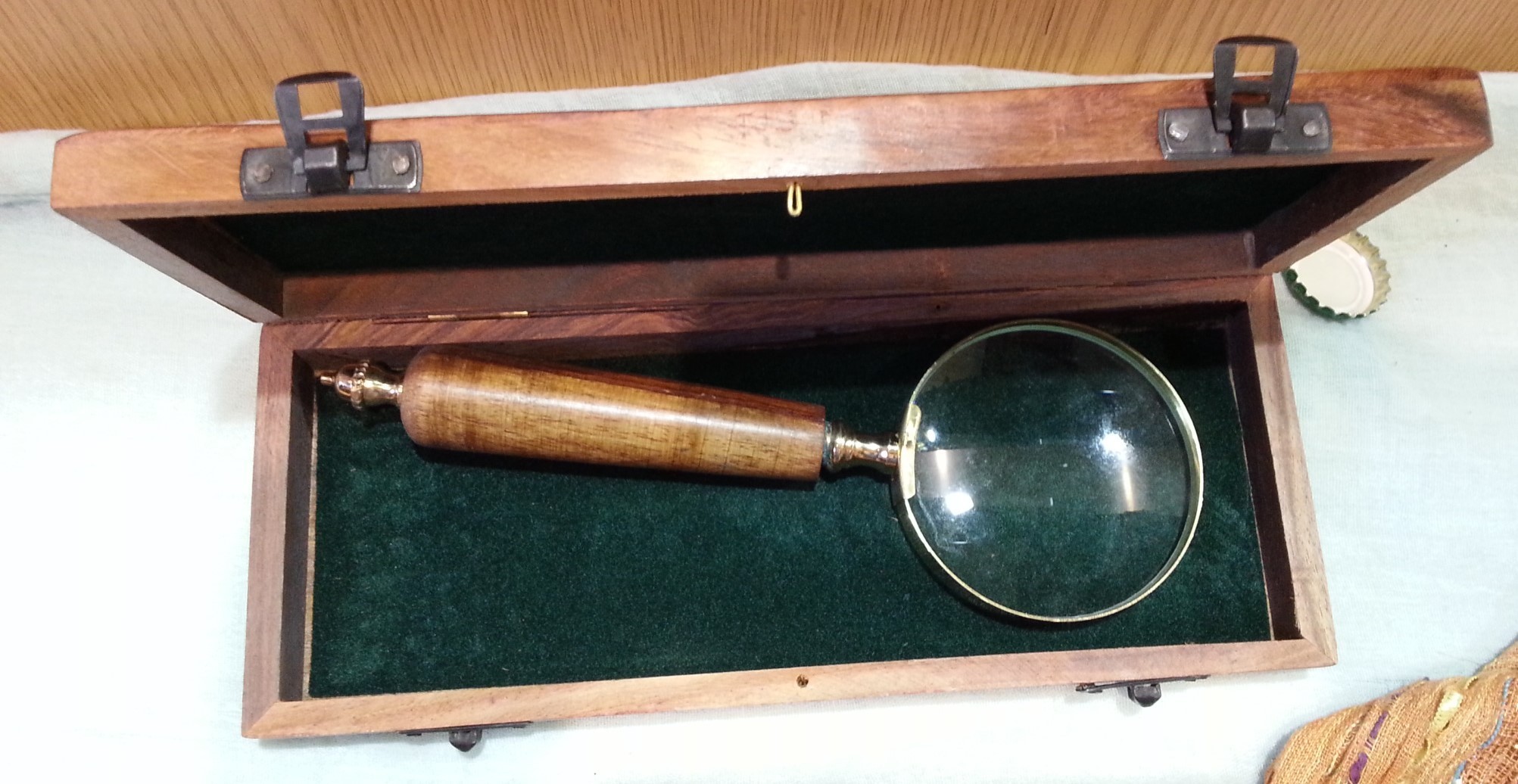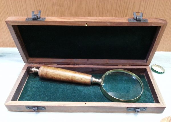 Incluye su preciosa caja de madera para guardarla. La lupa que les presentamos es una reproducción de las usadas en el siglo XIX en los gabinetes de científicos y naturalistas. Es totalmente funcional y es un hermoso objeto que puede decorar cualquier librería o despacho.