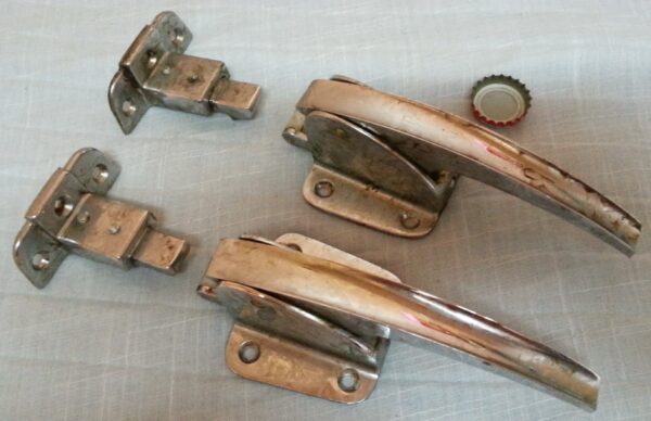 Manillas de apertura de antiguos frigoríficos. Pareja. Cerraduras.