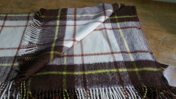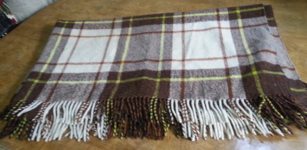 Cuadros marrones y amarillos con flecos.