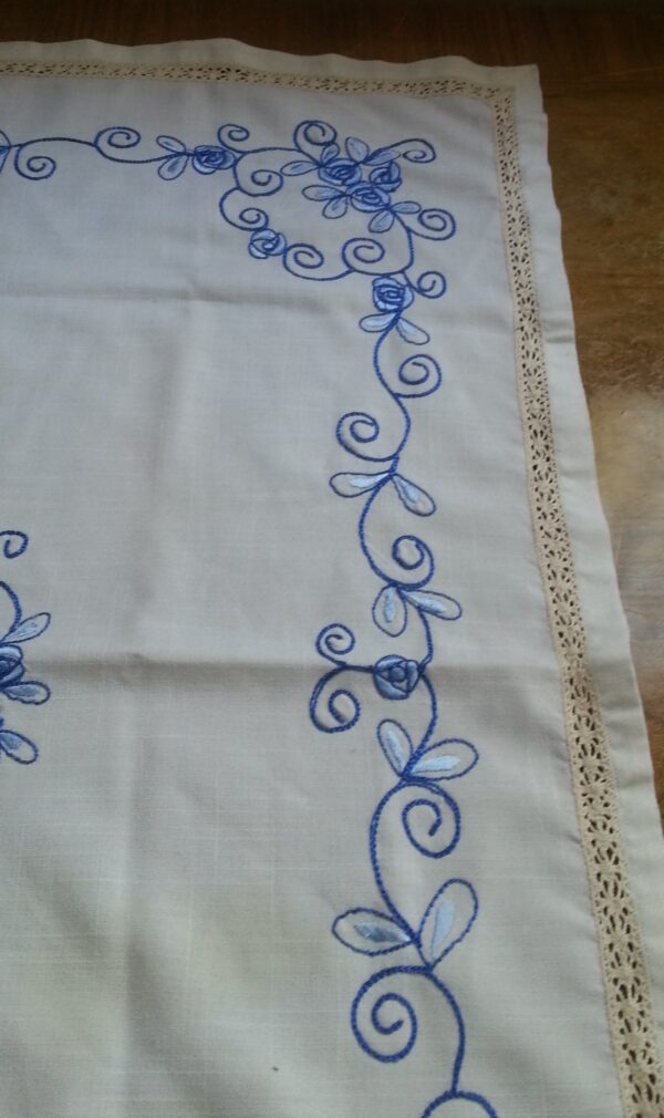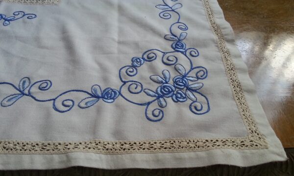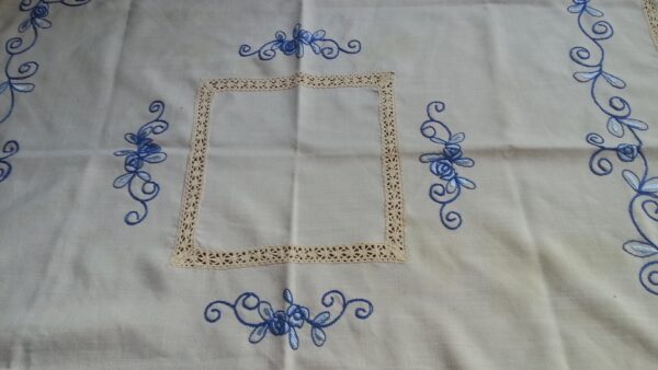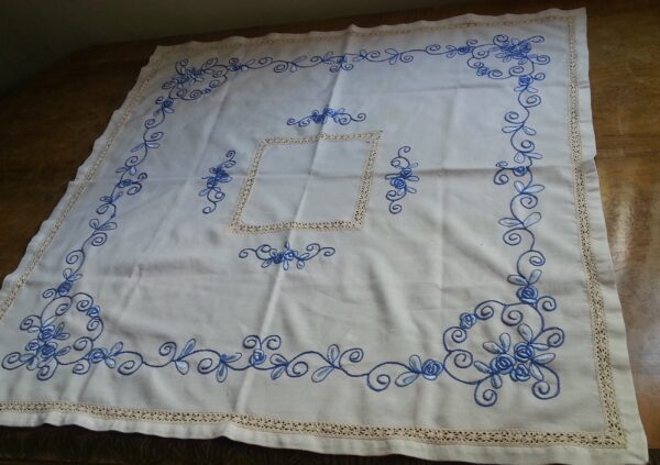 Mantel. Florecillas azules. Pequeño. 80 cm por lado.