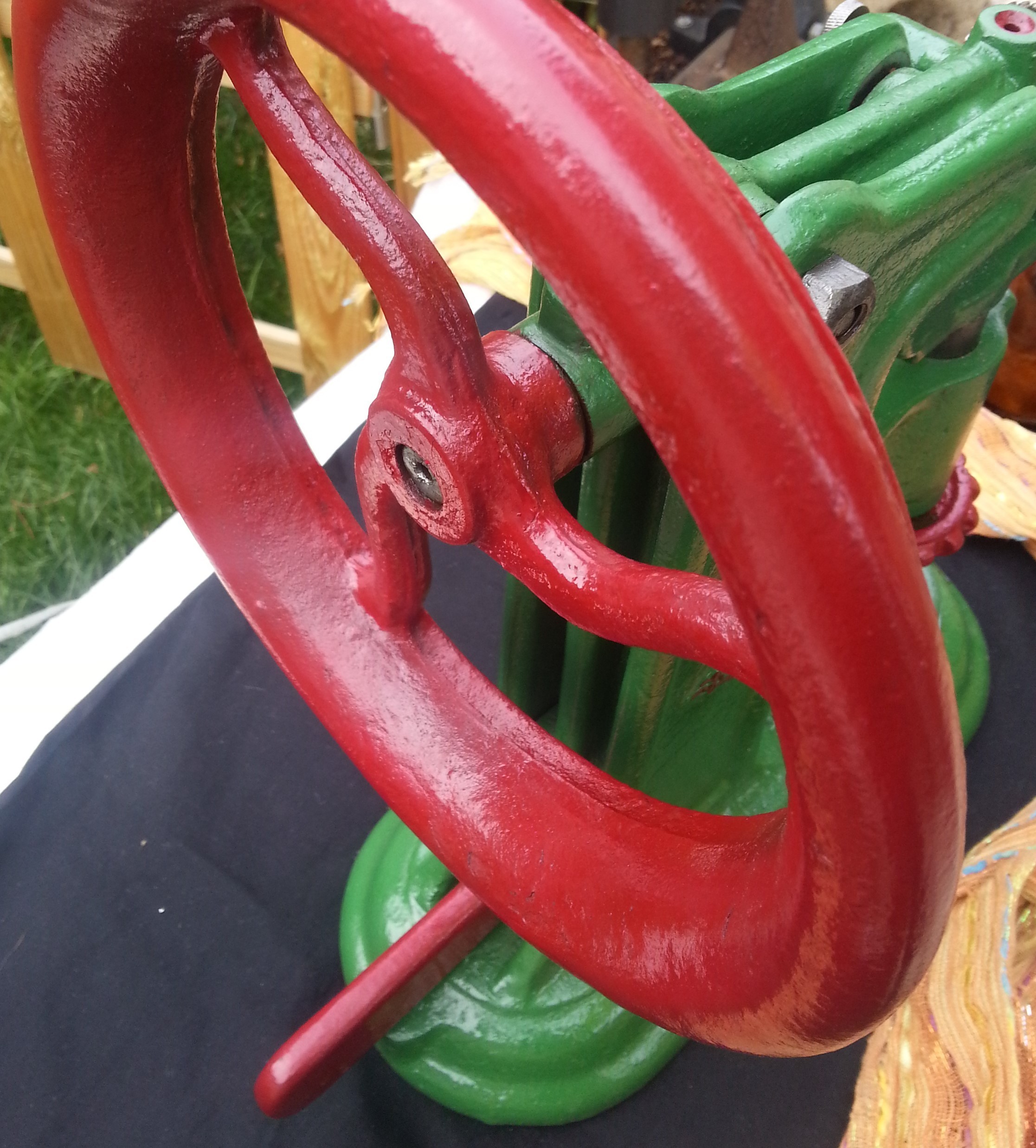 La herramienta está repasada y restaurada y pintadita. Vieja pero operativa y preciosa para decoración.