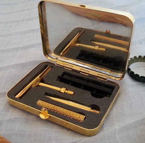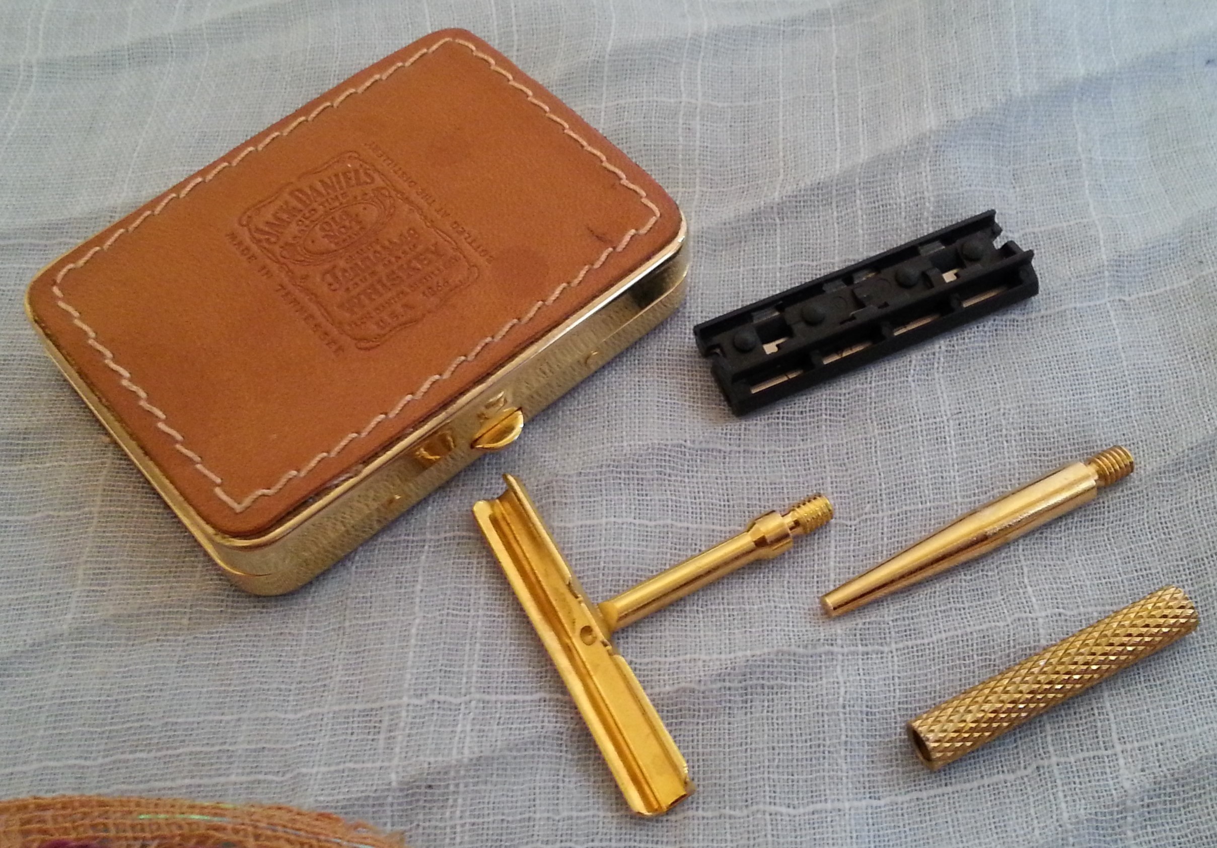 Preciosa maquinilla de afeitar en su cajita original con espejo. Patrocinada por Jack Daniel´s