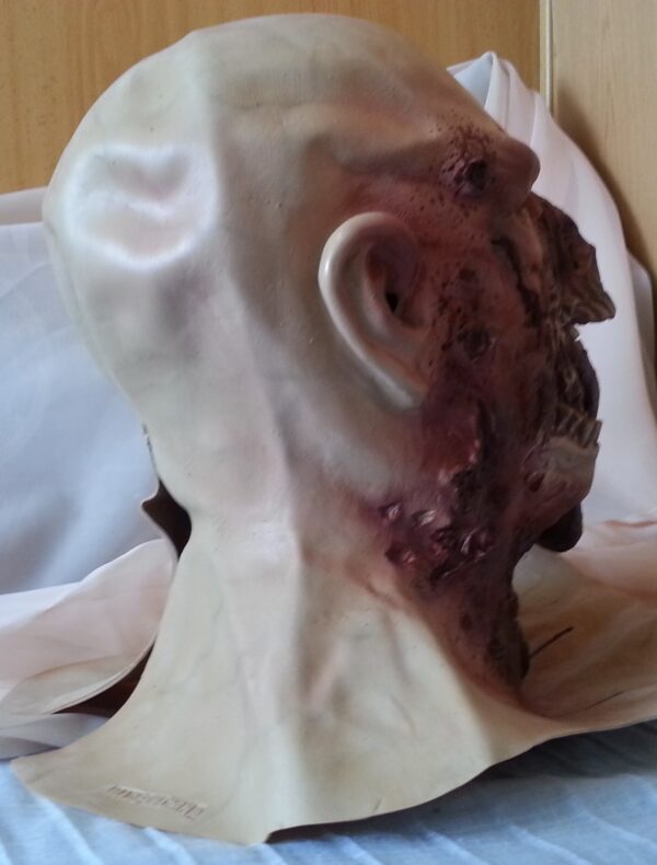 Es una réplica de las máscaras de latex que se vieron en The Walking Dead.