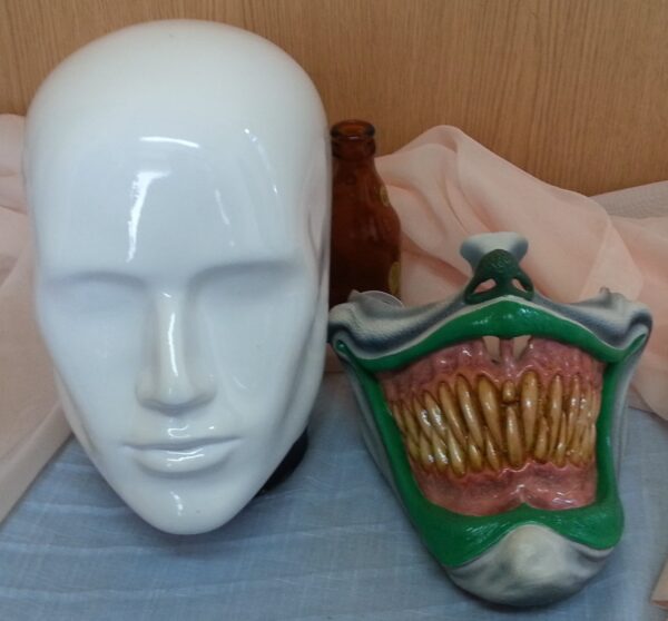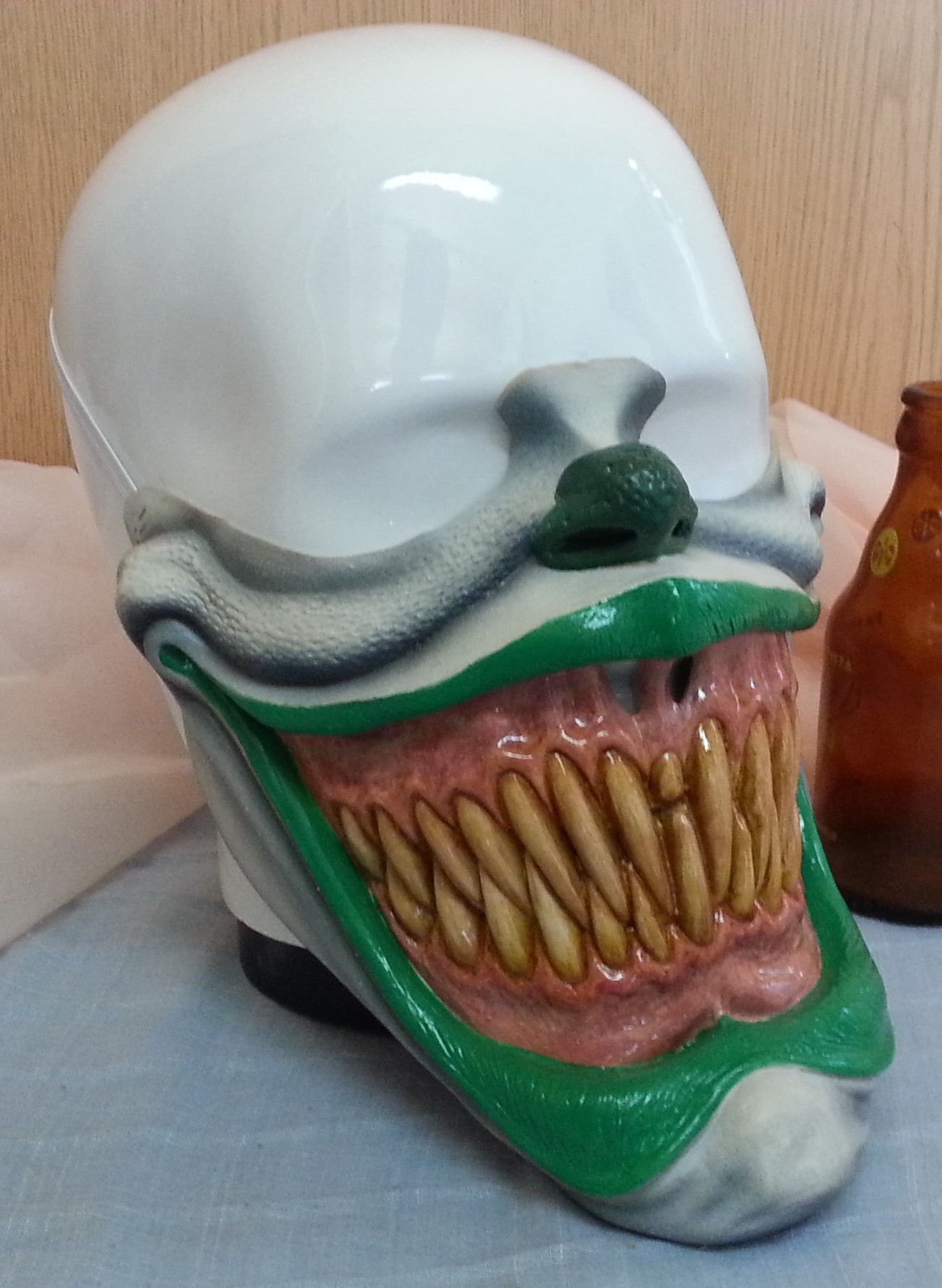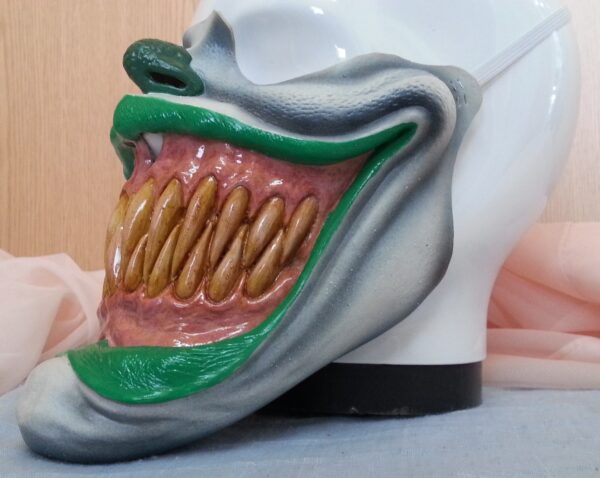 Impresionante máscara artesanal fabricada en resinas y goma. Incluye el busto para su exposición.
