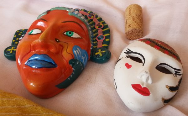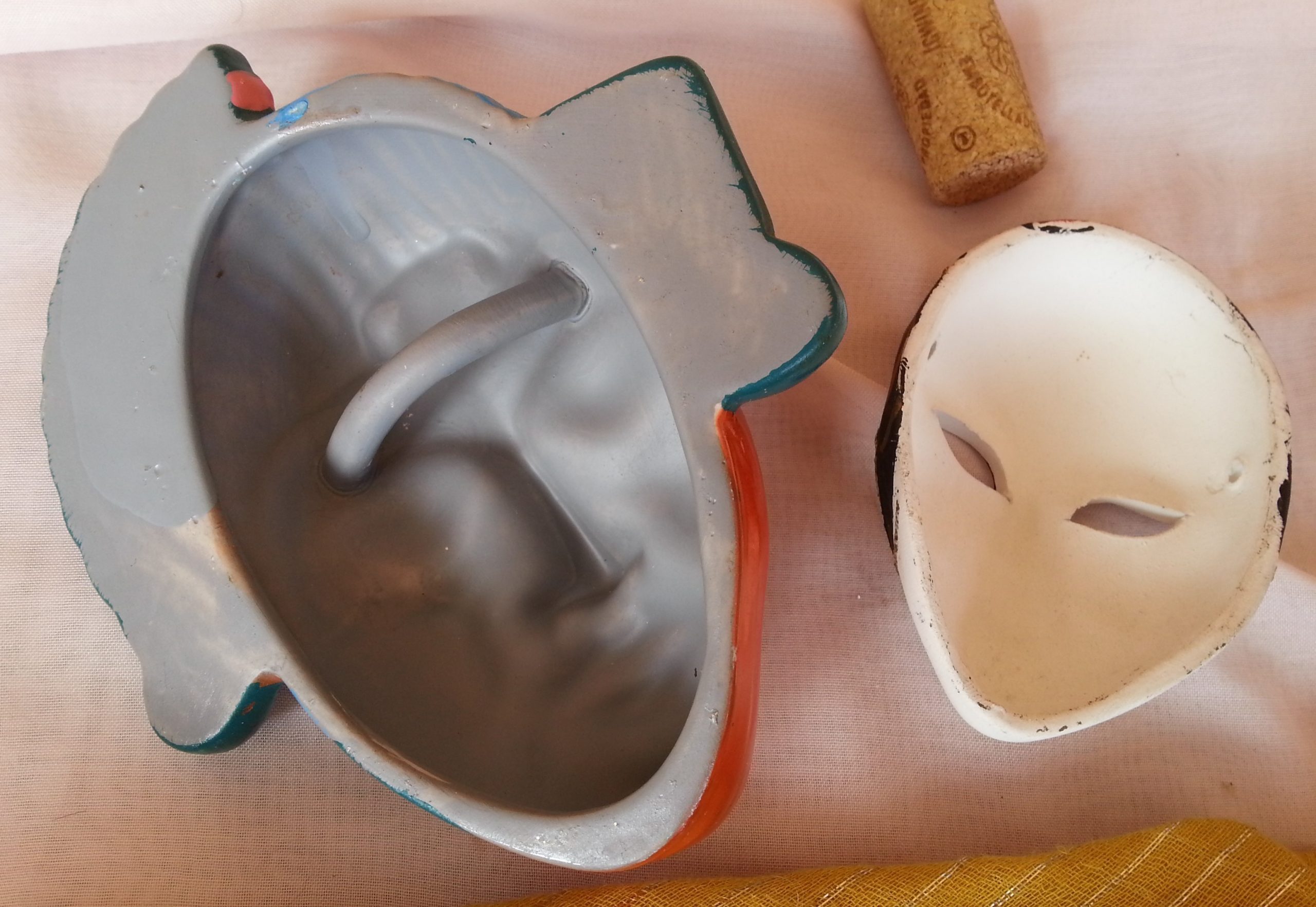 Máscaras cerámicas. Pareja. Años 70. Pequeño tamaño.