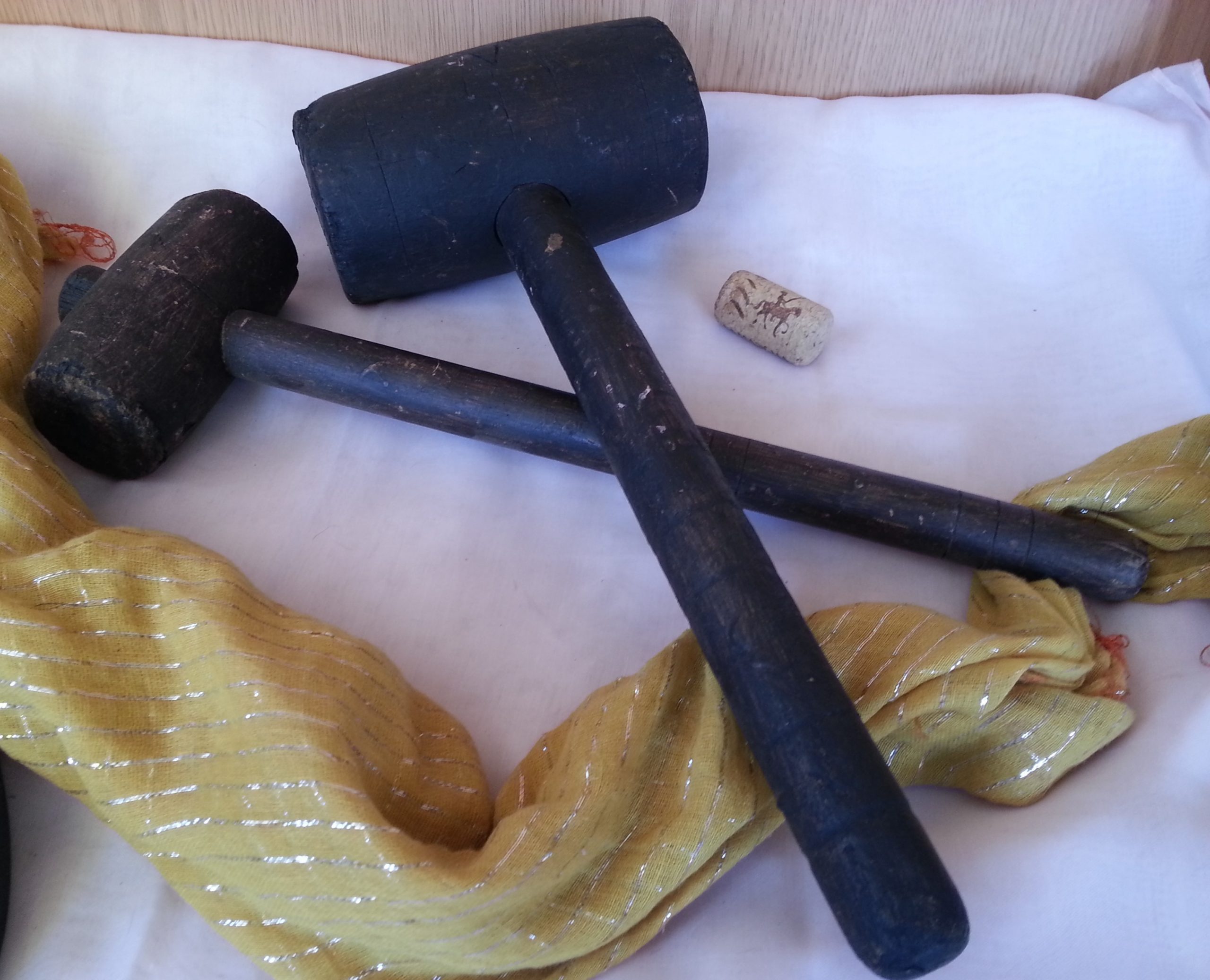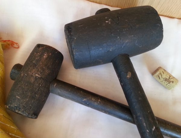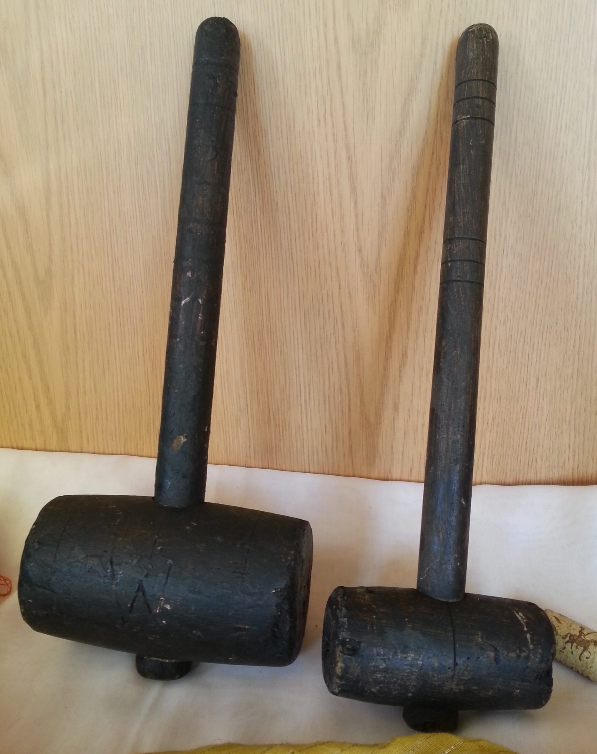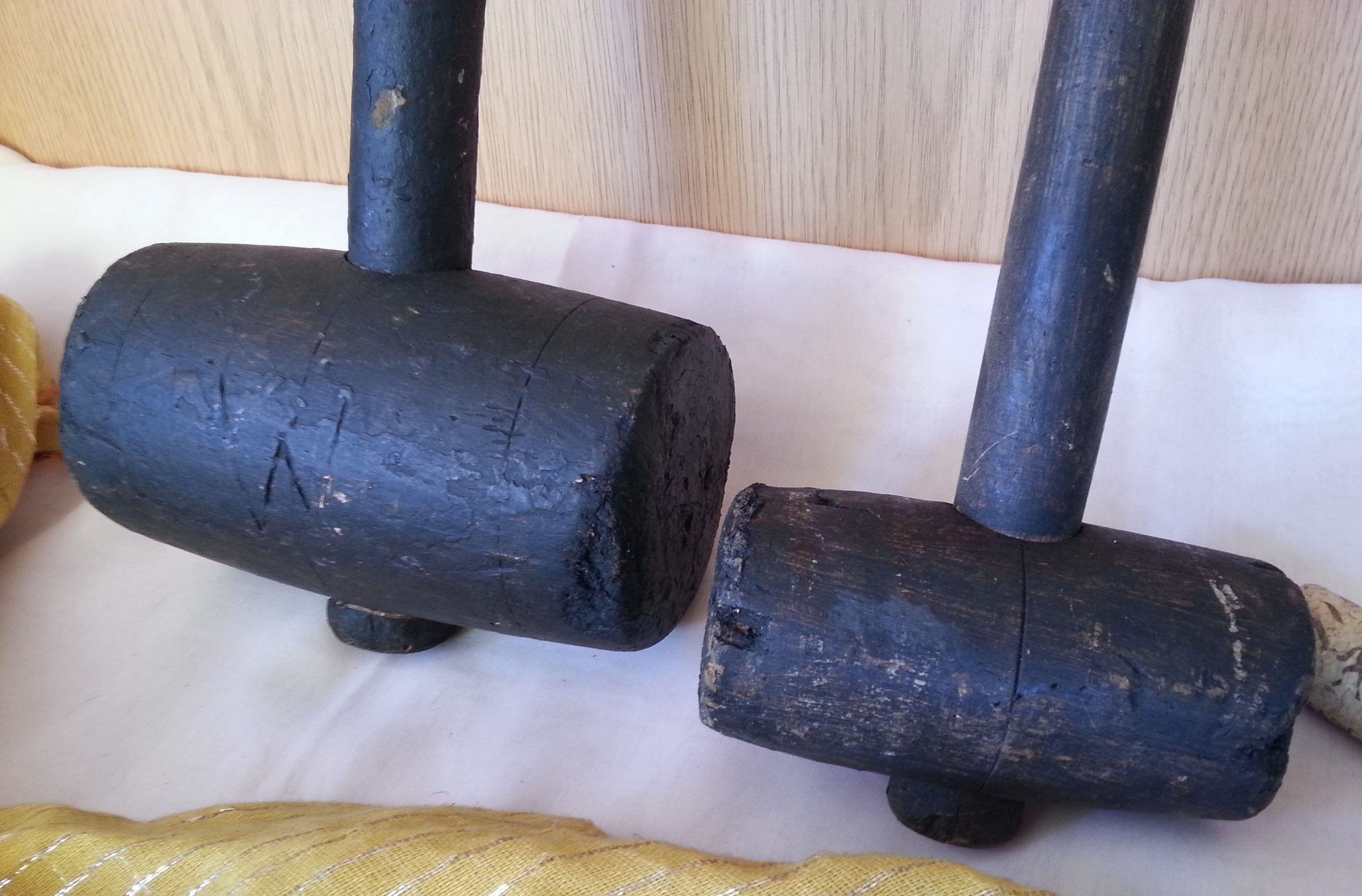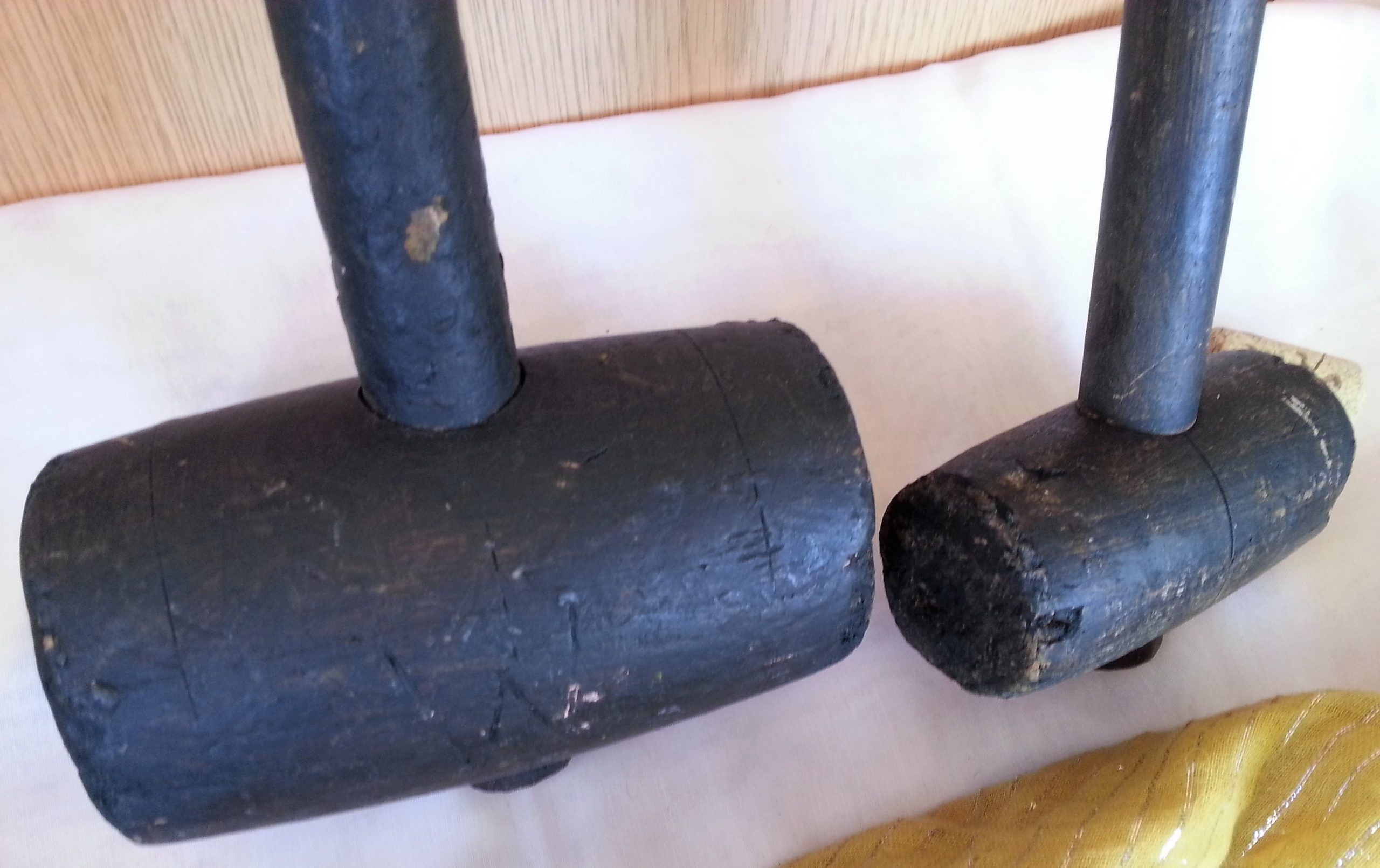 Viejas mazas de madera con los signos y señales del trabajo realizado durante muchísimos años.