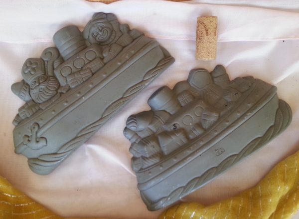 Molde para hacer figuras de chocolate. SANTA CLAUS EN BARCO. Años 70. Fuerte y a doble cara.