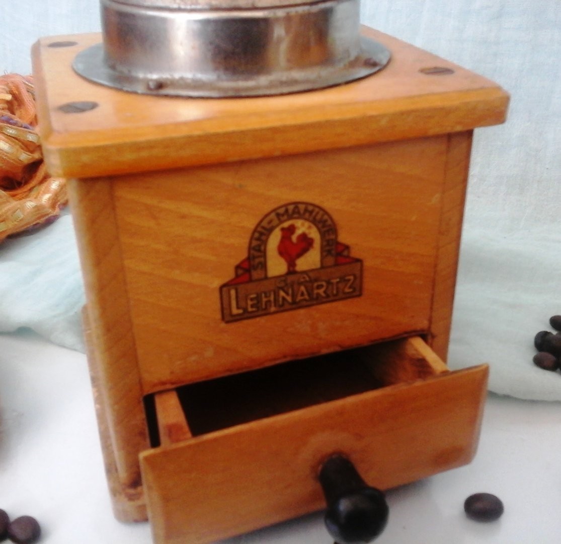 Molinillo de café marca “Lehnartz”. Viejo. Madera de haya. .