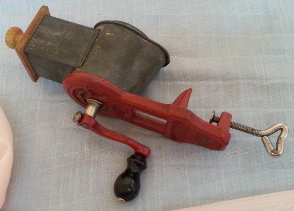 Curioso molinillo de la marca Elma en muy buen estado general, utilizado para rallar pan y algunos frutos secos. Funciona perfectamente.
