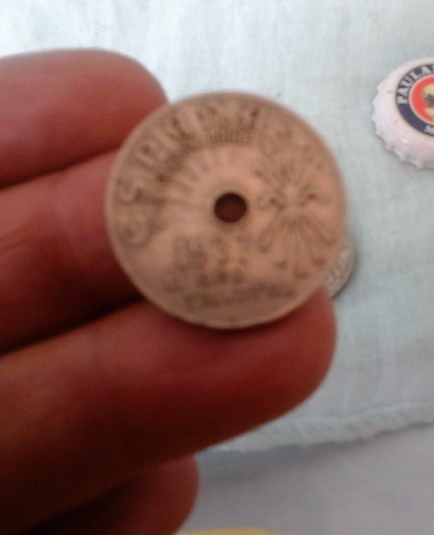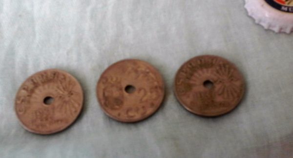 Monedas de 25 céntimos del año 1937. Escudo falangista. 3 piezas.