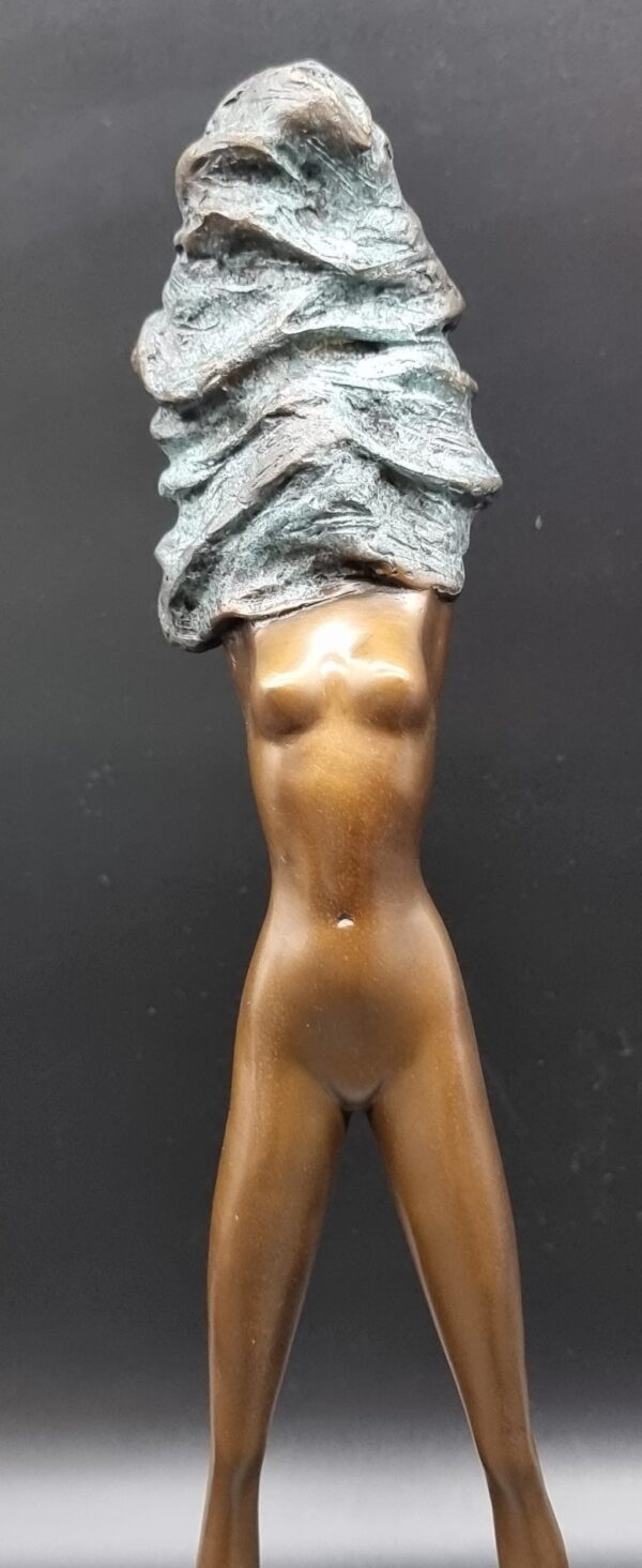 Mujer. Escultura en bronce. Dama joven desnudándose. 36 cm altura.