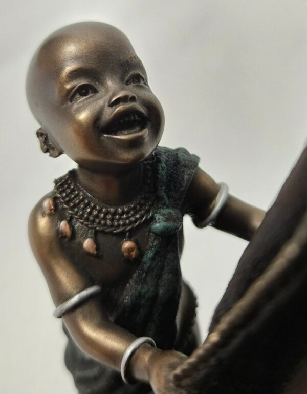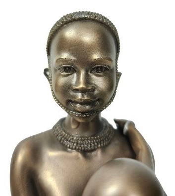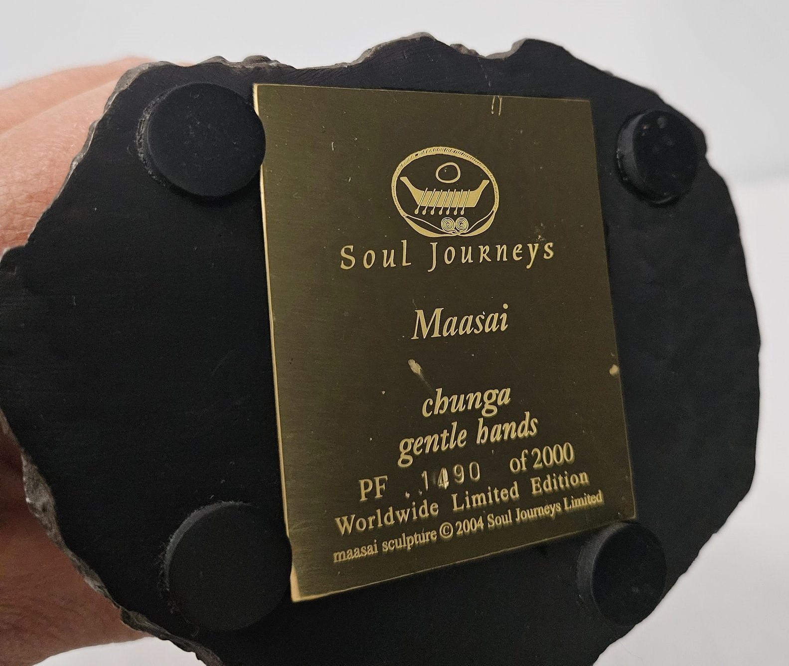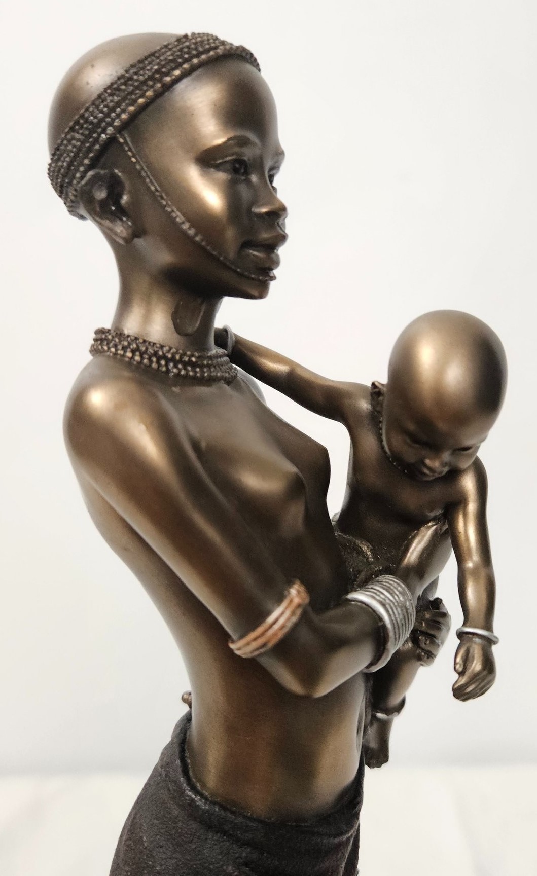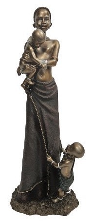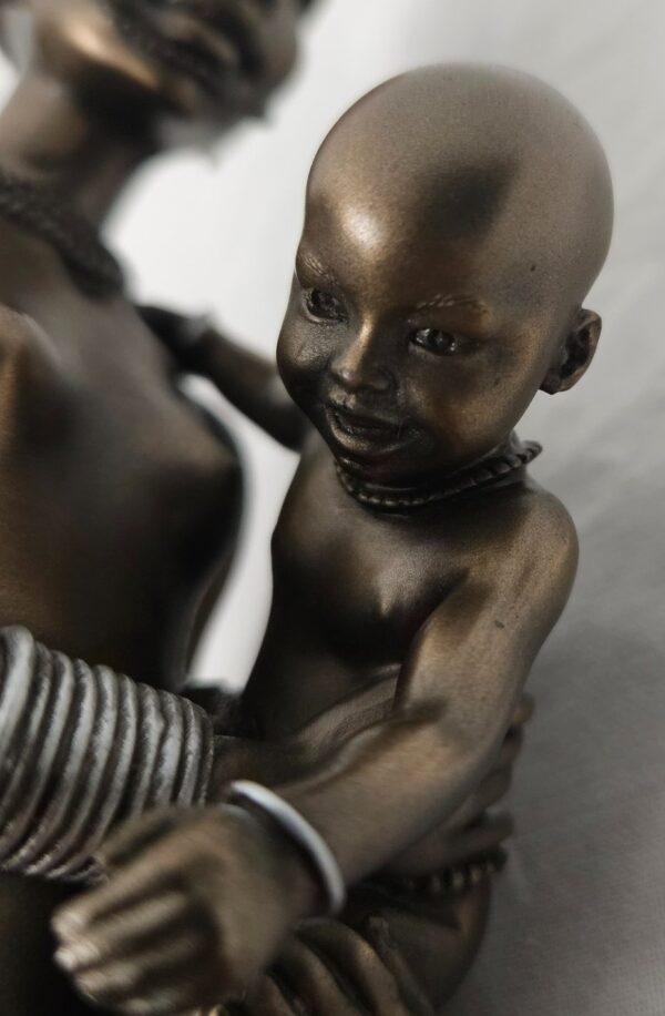 Detallados rasgos en esta bonita escultura representando a una mujer maassai con sus niños.