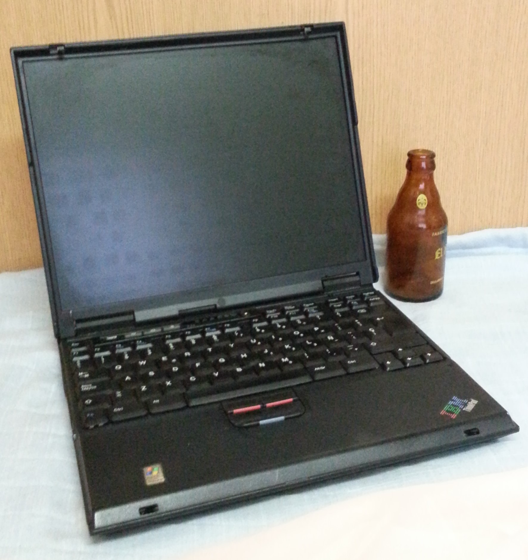 Será interesante este ordenador viejo portátil para decoración, atrezzo o repuestos. Marca IBM.