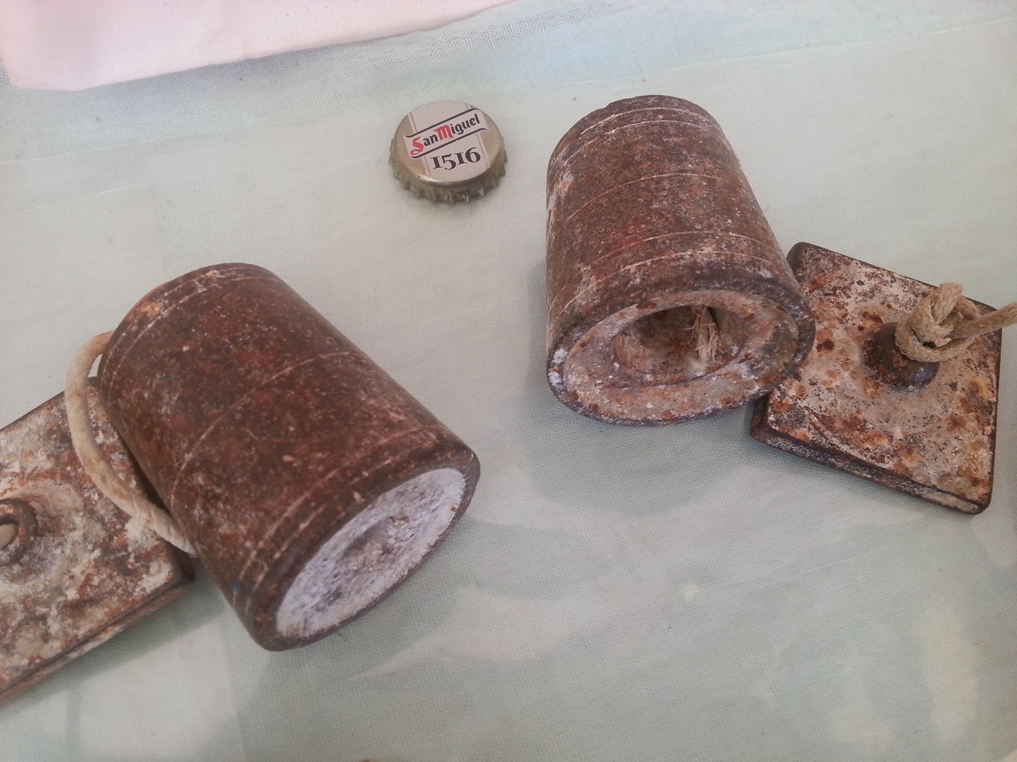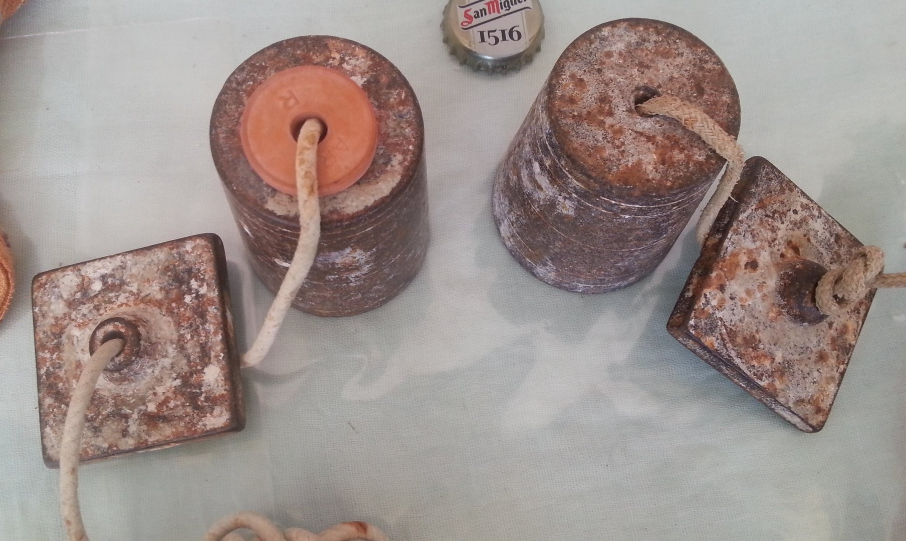 Pareja de viejas plomadas en hierro. Todavía útiles. Old plumbs.