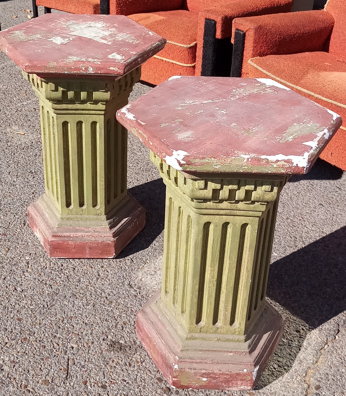 Preciosas peanas con forma de balaustrada en escayola. Se notan los años pasados pero serán magníficos objetos de decoración.