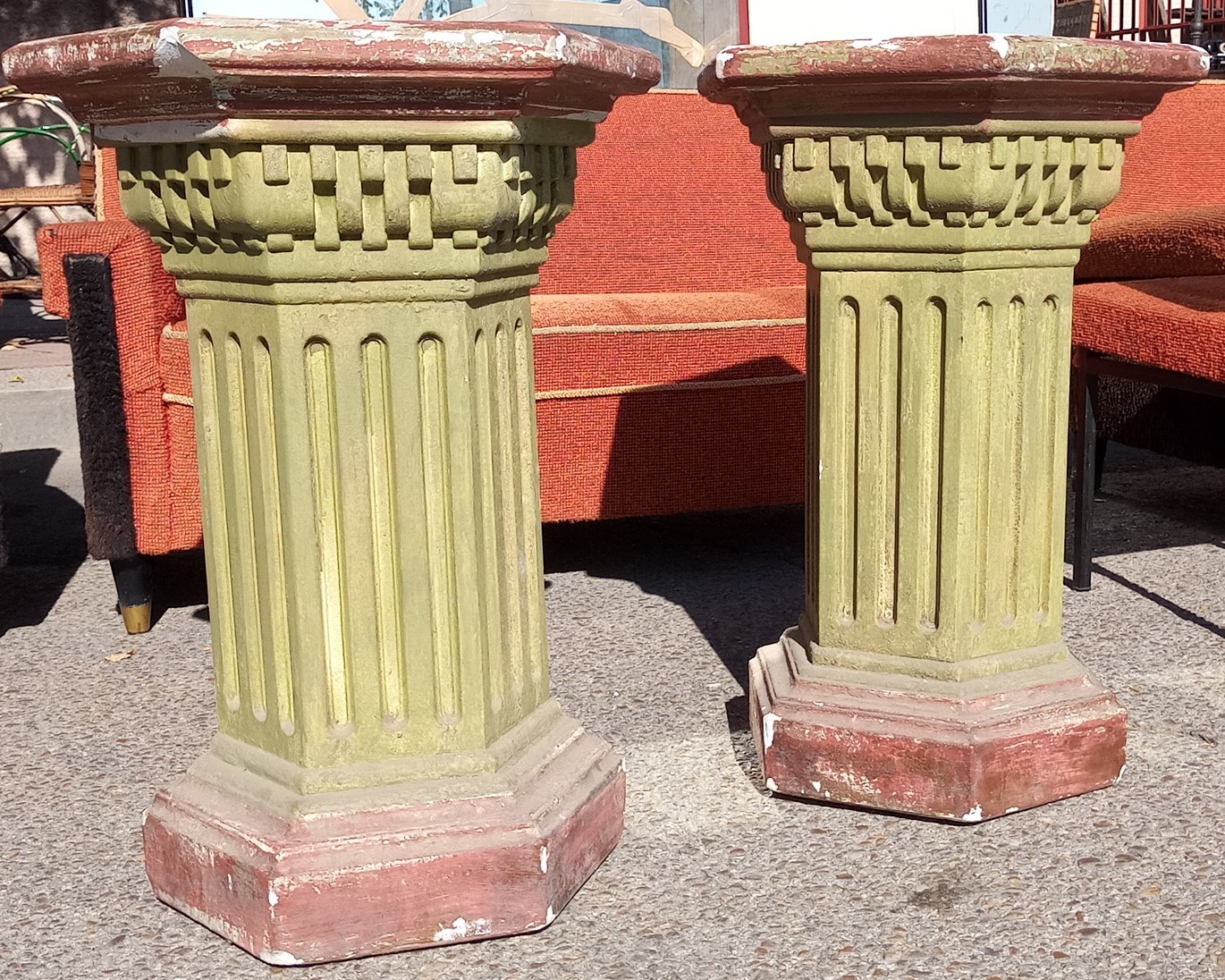 Pedestales. Pareja. Construidos hace años en escayola policromada. Columnas.