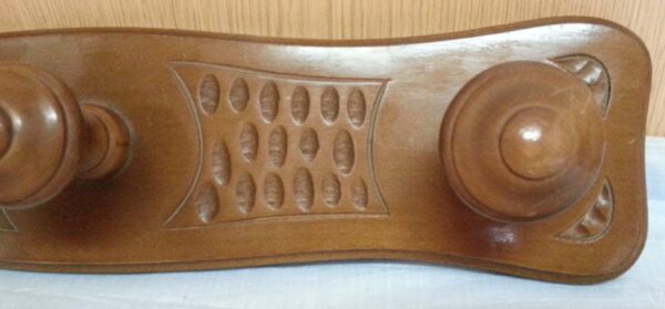Perchero de pared en madera. Tres ganchos. Años 80.