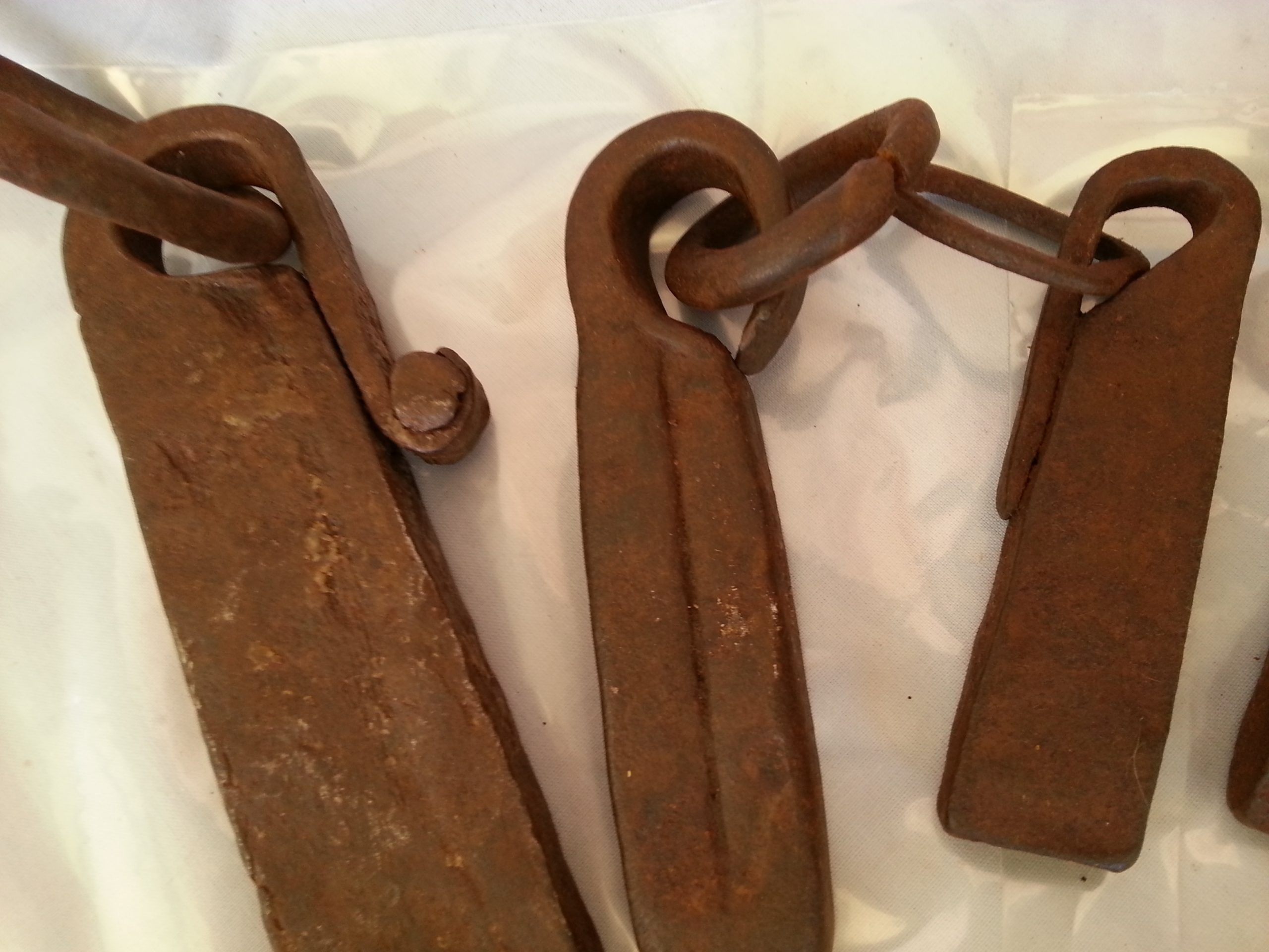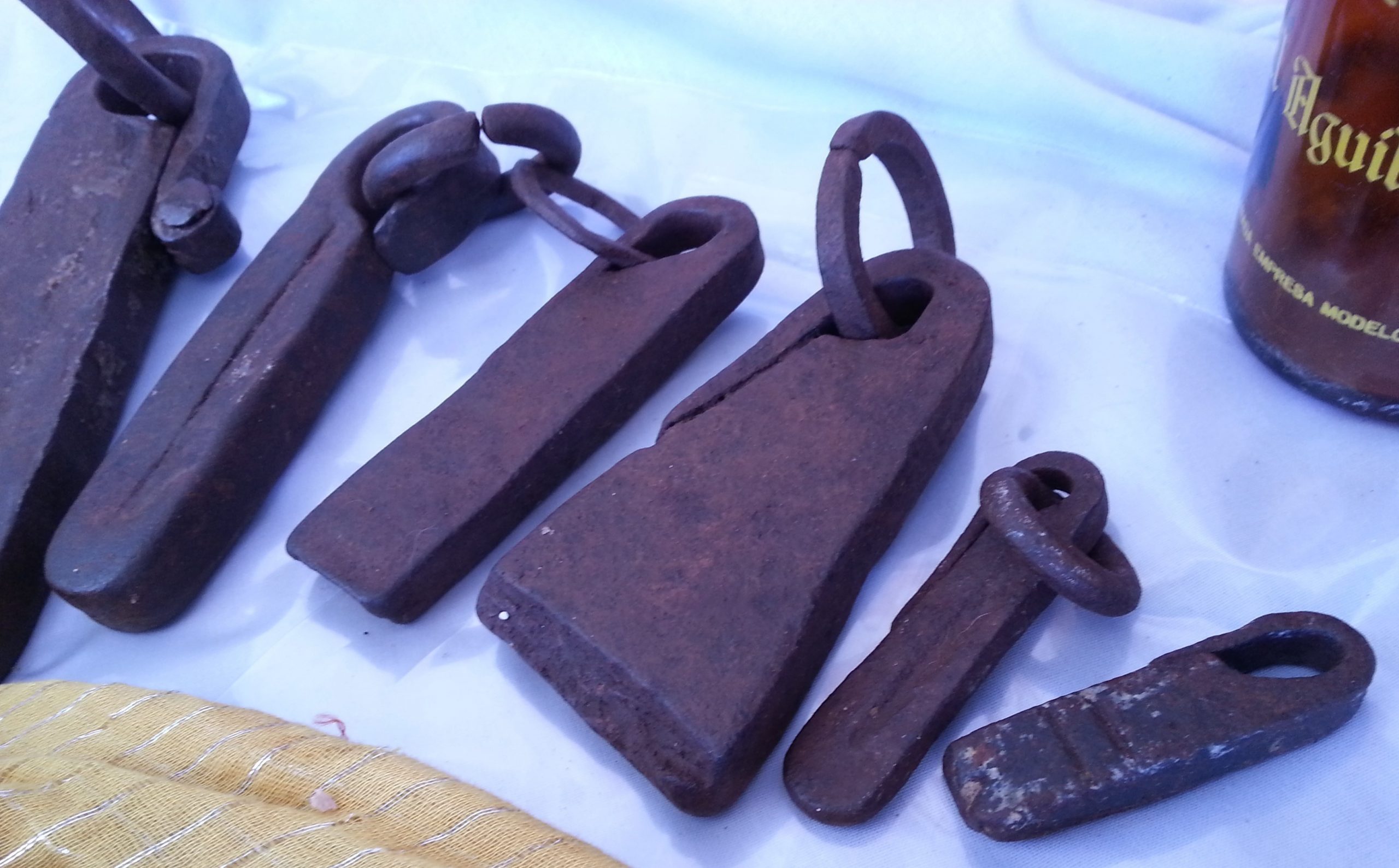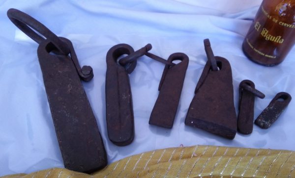 Suelen ser lingotes o trozos de diferentes formas en puro hierro forjados a mano por artesanos herreros de la época. Algunas veces magníficas señales de los grabados se conservan en ellas.