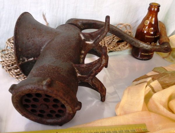 Fabricada en España esta vieja picadora de carne sigue funcionando. Todavía es útil.
