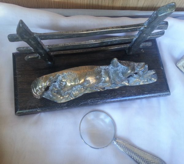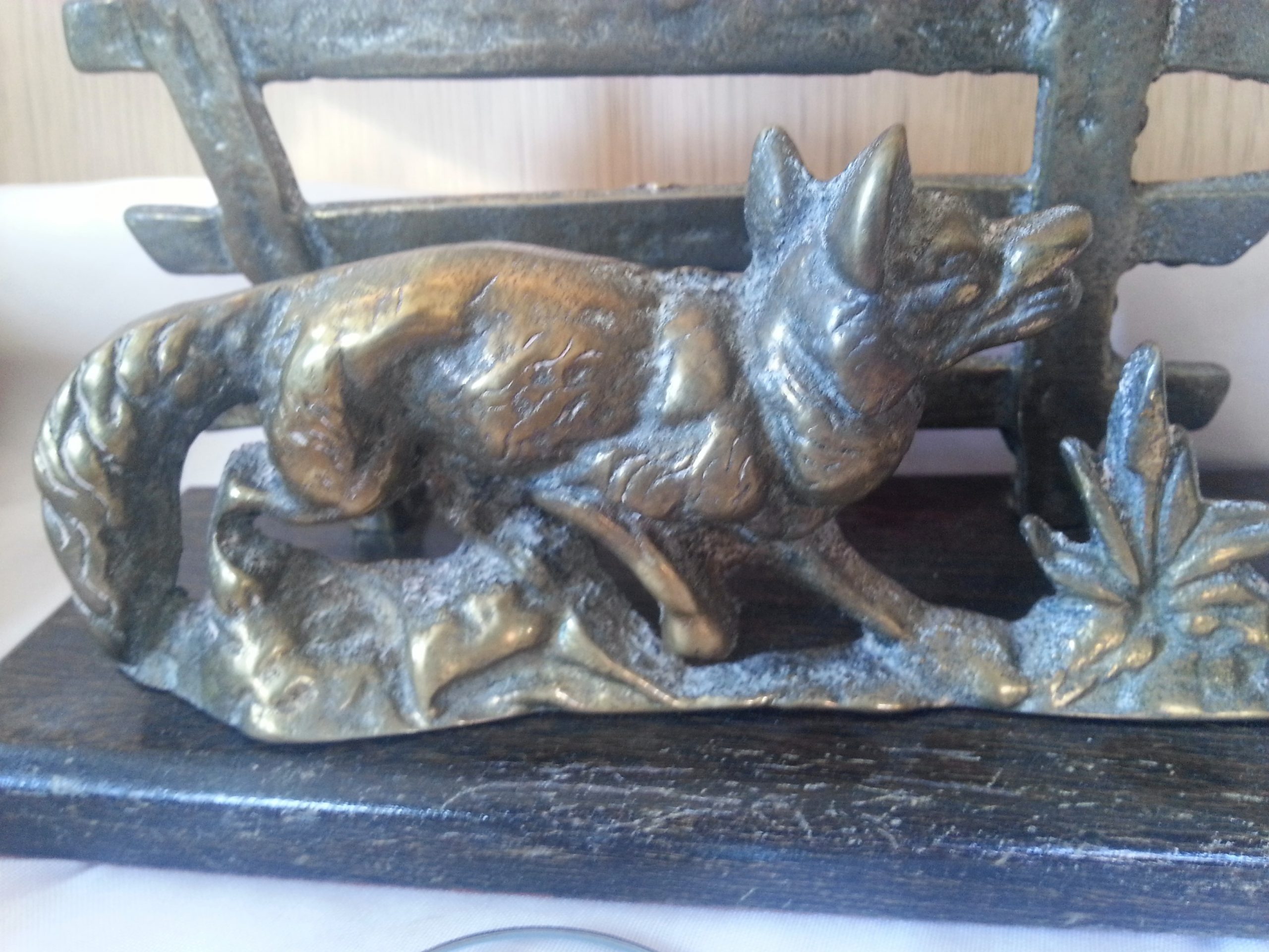 Pieza de escritorio guarda-cartas. En bronce. Zorro del bosque. Letters rack.