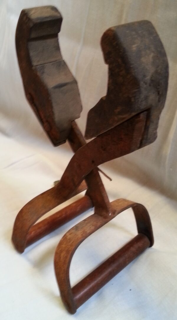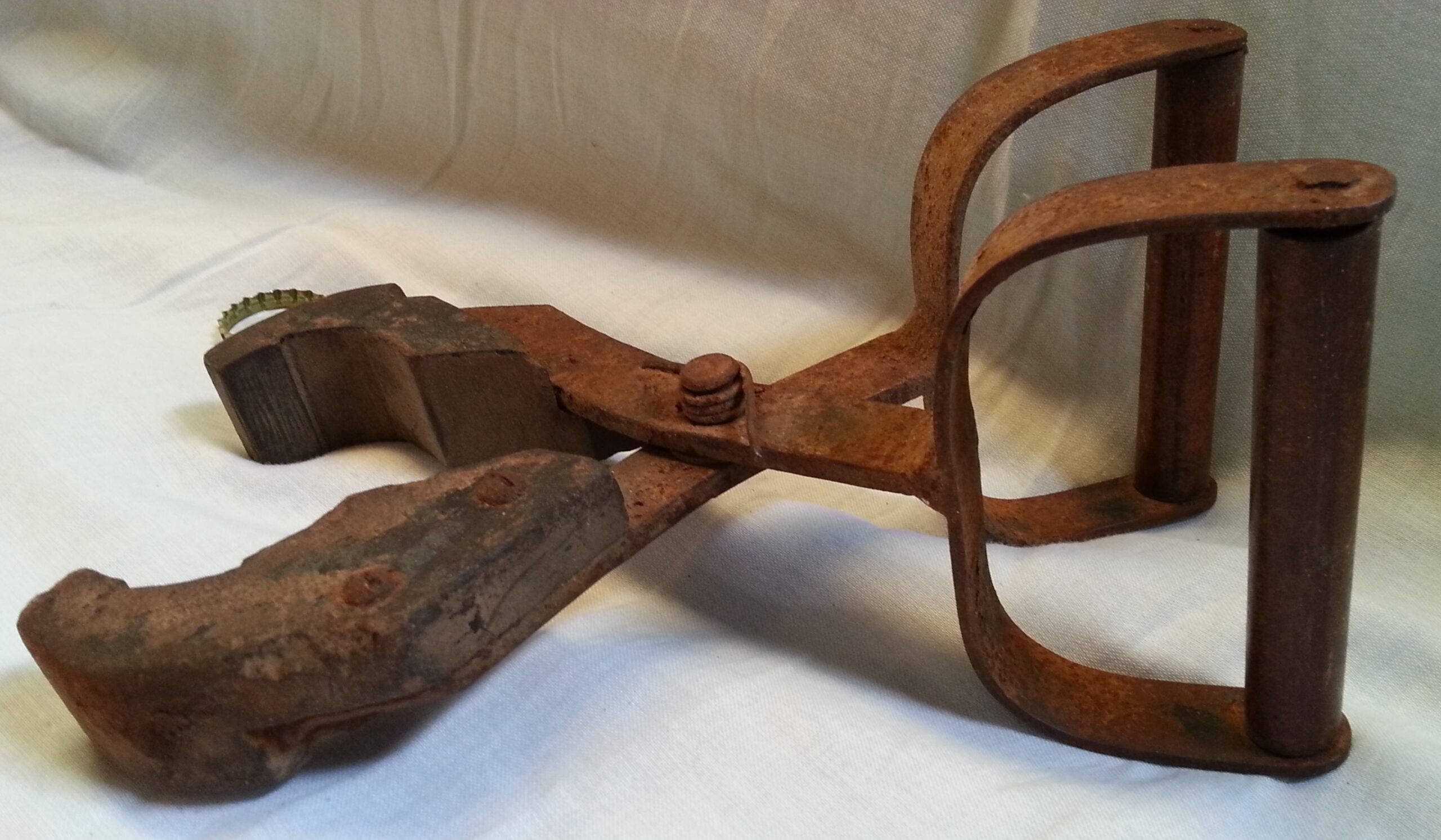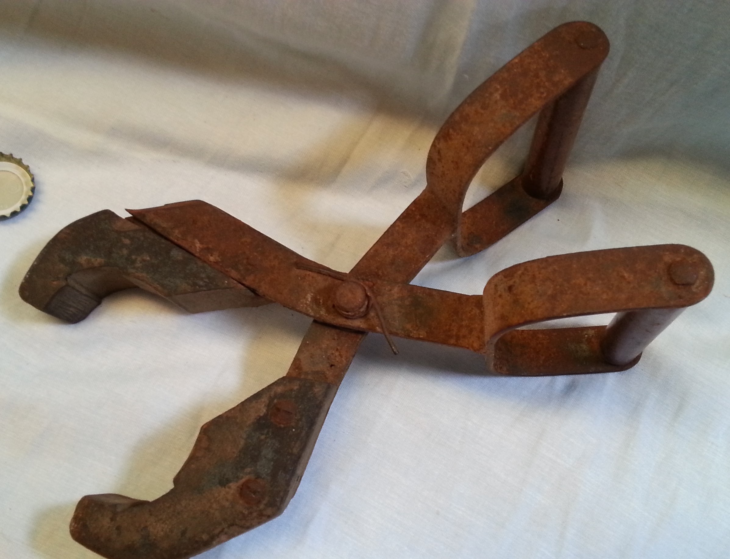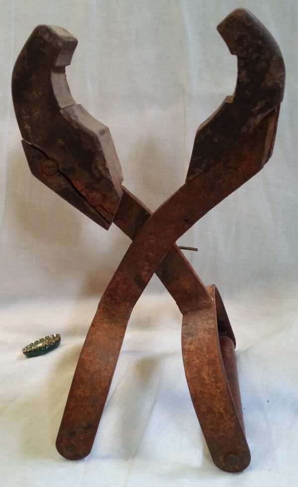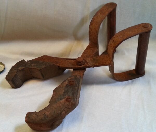 Curiosas pinzas antiguas de electricista para utilizar con los cables de electricidad de alta tensión.
