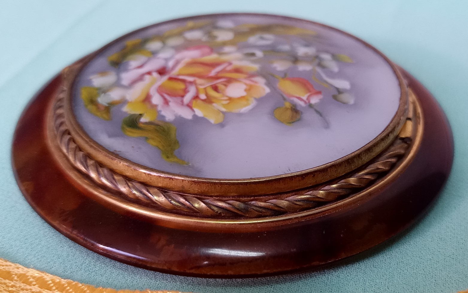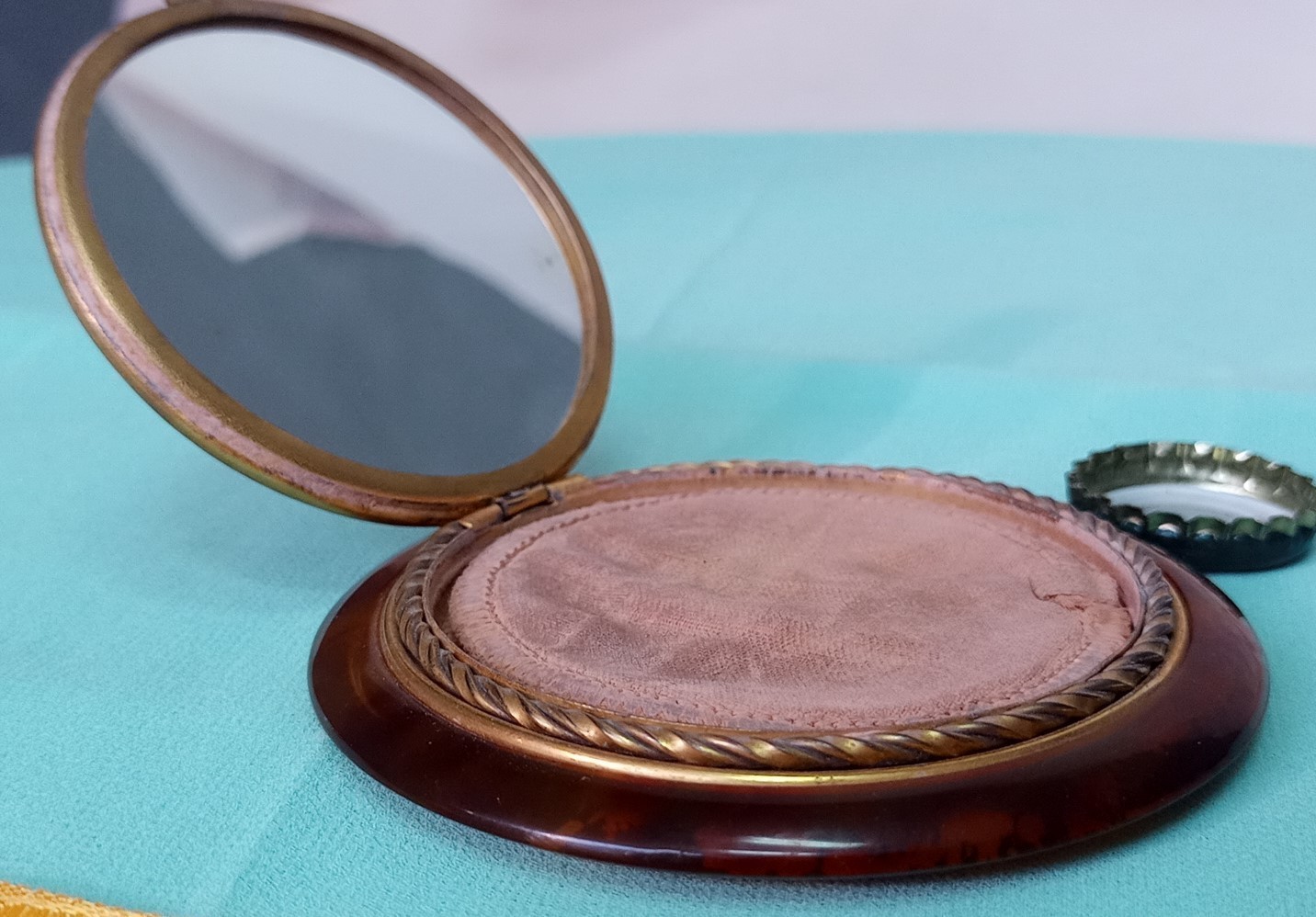 Preciosa polvera. Conserva su espejito. Tapa floreada.