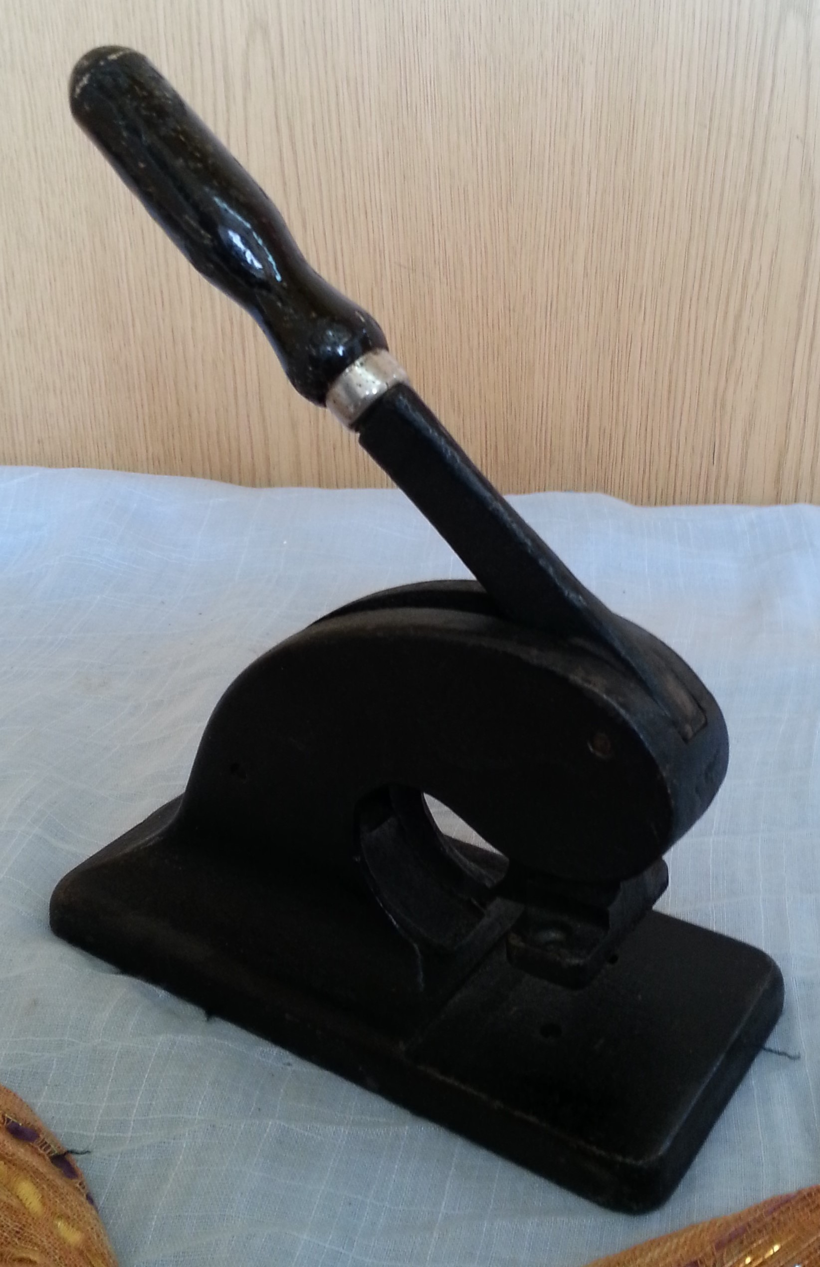 Prensa para impresión de sellos en seco con relieve. Fabricada en hierro macizo con mango de madera original en los años 30 – 50. Magnifico complemento para su escritorio.