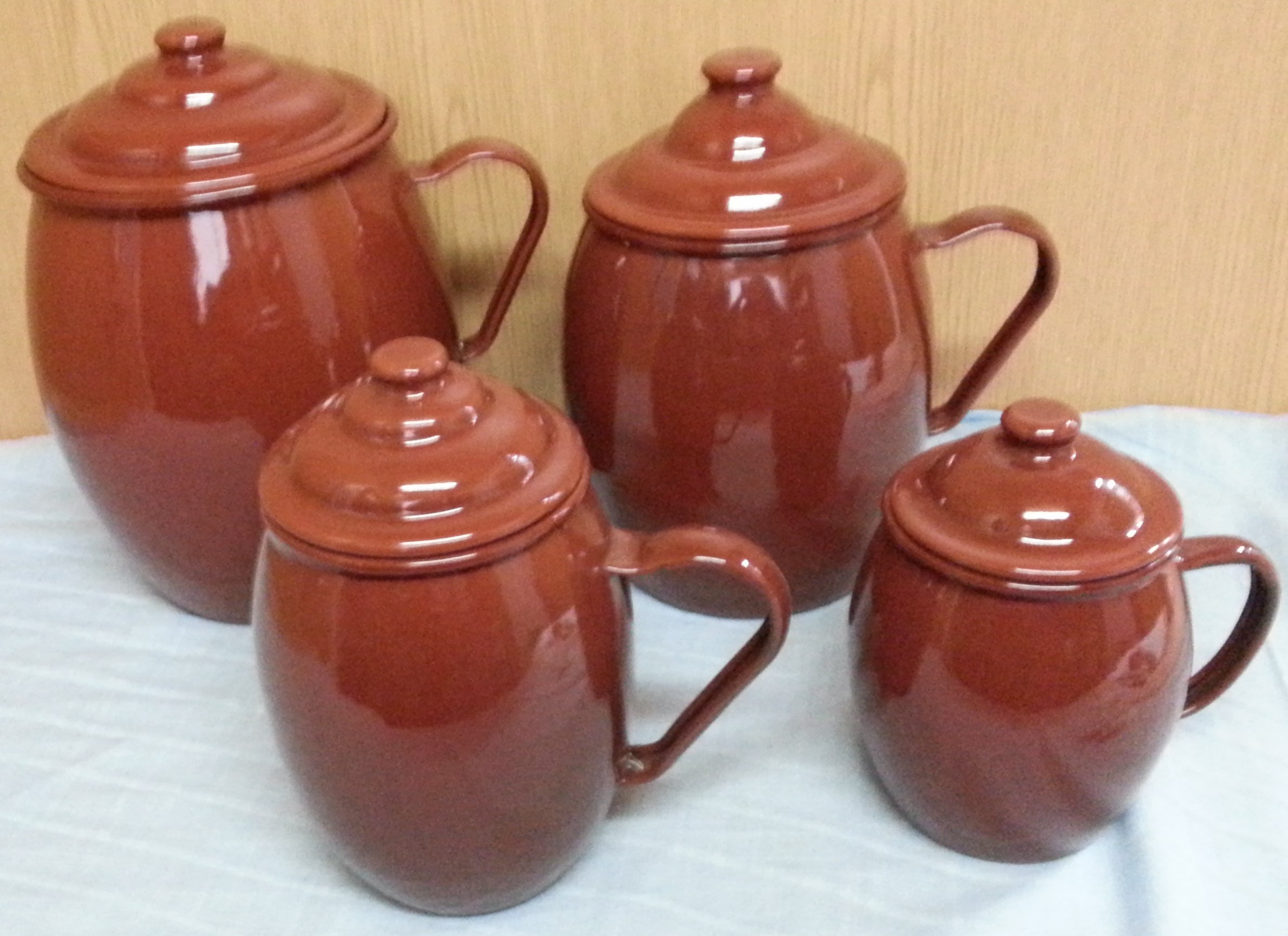 Emblemático conjunto de pucheros para su cocina en metal esmaltado y nuevos a estrenar.