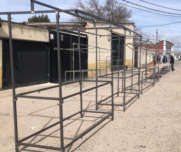 Se trata de puestos de mercadillo ambulante ya que son desmontables totalmente para poder ser transportados de un lugar a otro. Incluyen también sus tableros de aglomerado para exponer los objetos.