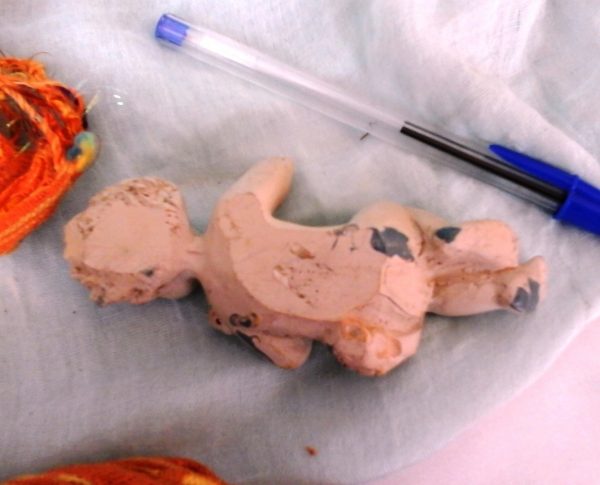 Muy antigua figura que por desgracia tiene un pequeño desconchón en un ojito y en en una mano.