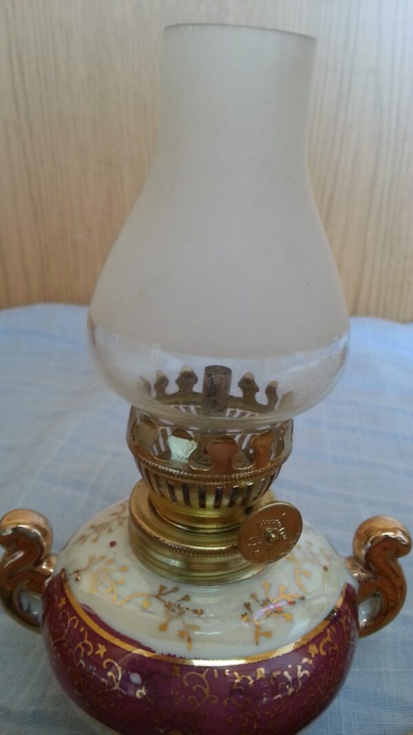 Magnifica pieza de colección este pequeño quinqué en vidrio y cerámica. Buen estado general