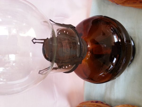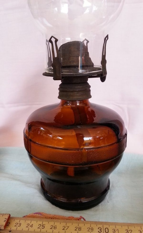 Quinqué en vidrio. Años 50. Perfecto estado. Precioso y útil.