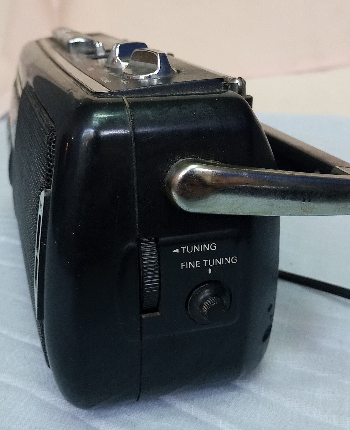 Viejo aparato en el que funcionan todos sus componentes y la antena está completa.