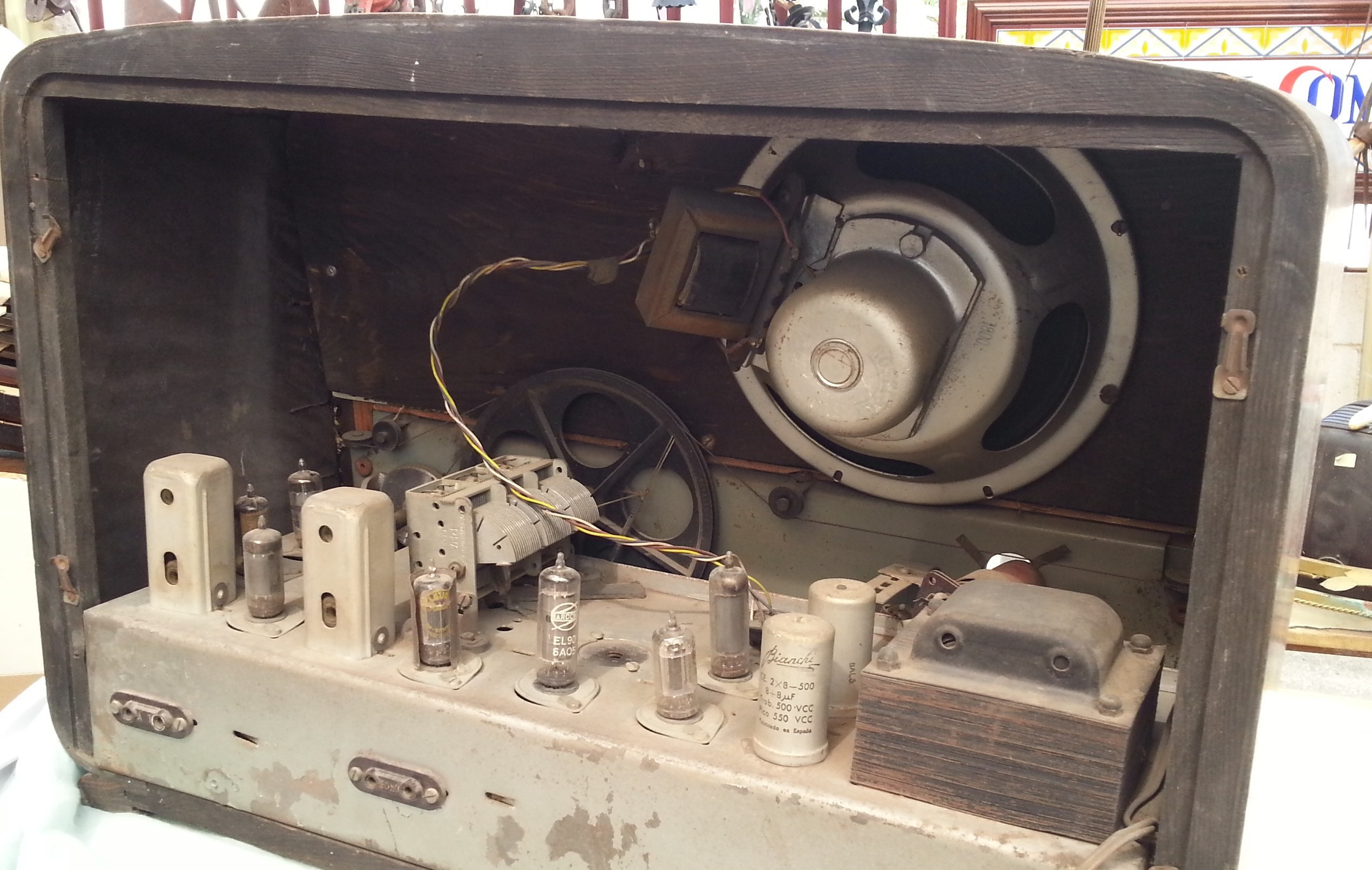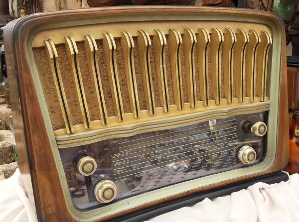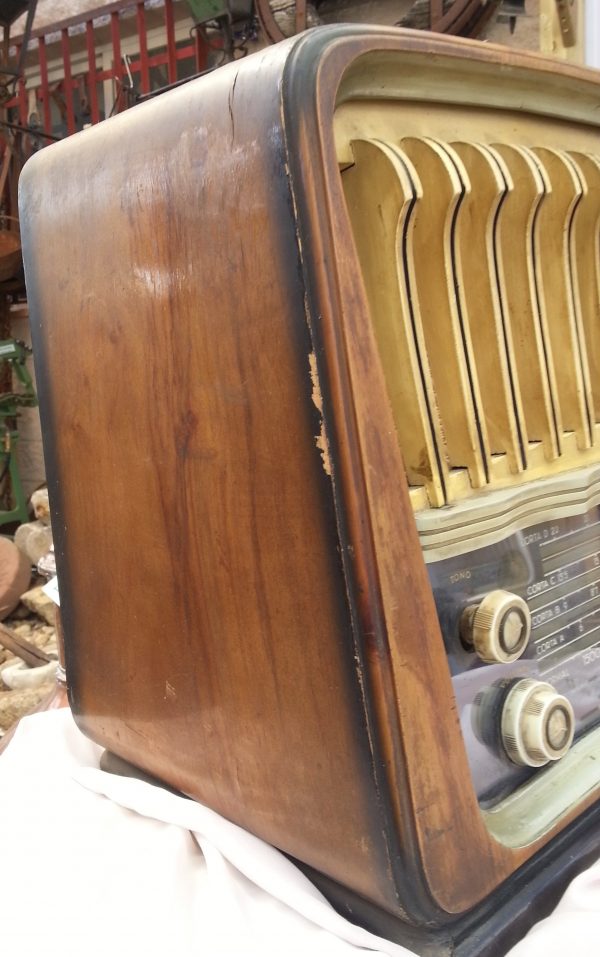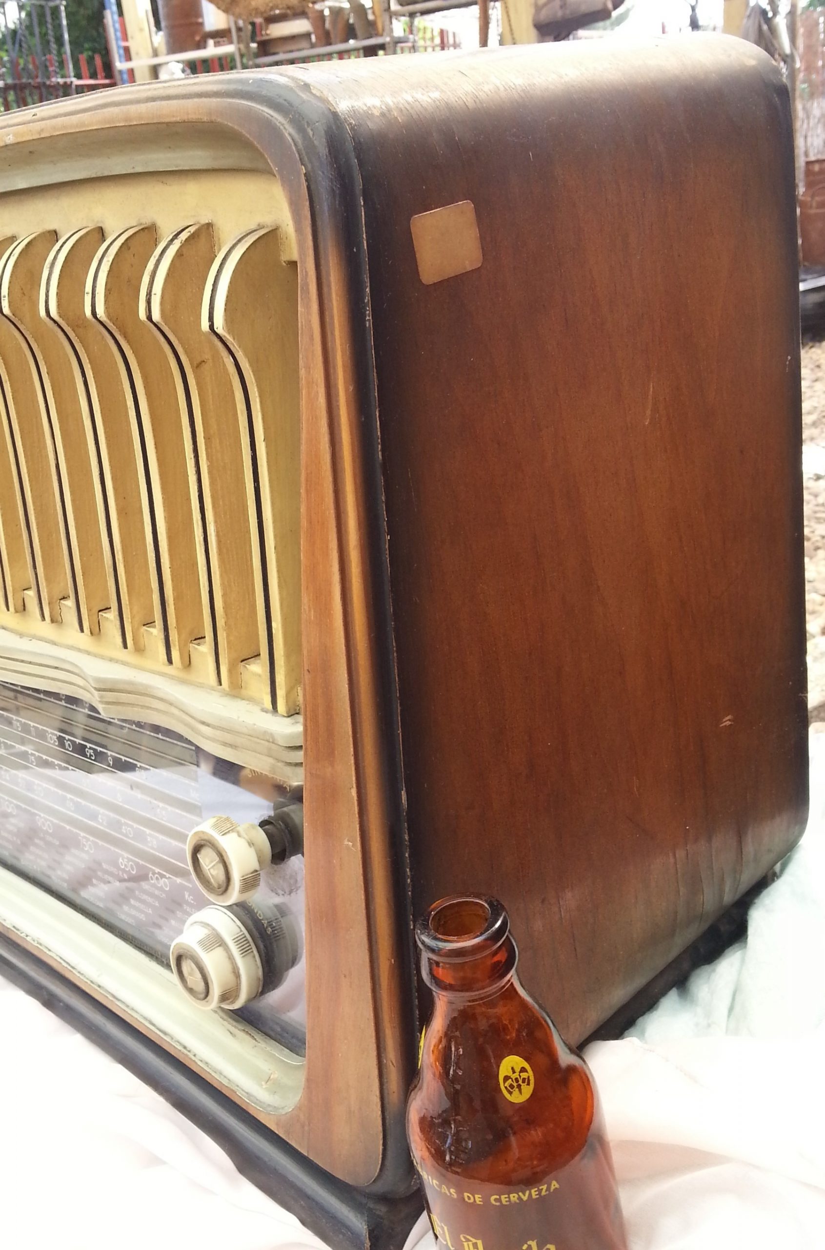 Preciosa radio de válvulas antigua. Desconocemos si sigue funcionando. Es un fantástico objeto antiguo para entretenerse en restaurar o para dejarlo tal cual se encuentra, ya que decorará cualquier espacio o escaparate.